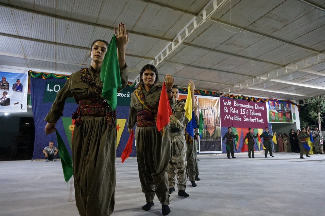 Şehit Rüstem Cudi (Mexmur) Mülteci Kampı sakinleri 15 Ağustos’ta Diriliş Günü’nü kutladı. Mahalle sakinleri dün saat 20.00’de Mexmur Kültür ve Sanat Merkezi’nde (NÇHM) toplandı. Kutlama alanı Önder APO, PKK, KCK bayrakları, Komutan Egîd Nemir (Mahsum Korkmaz) ve daha birçok Özgürlük Mücadelesi şehidinin resimleriyle süslendi. Ayrıca kutlama alanına “Zamanın direnişi, 15 Ağustos ruhuyla bizi zafere götürecek” ve “15 Ağustos Atılımının 40’ıncı yılı kutlu olsun” pankartları asıldı.