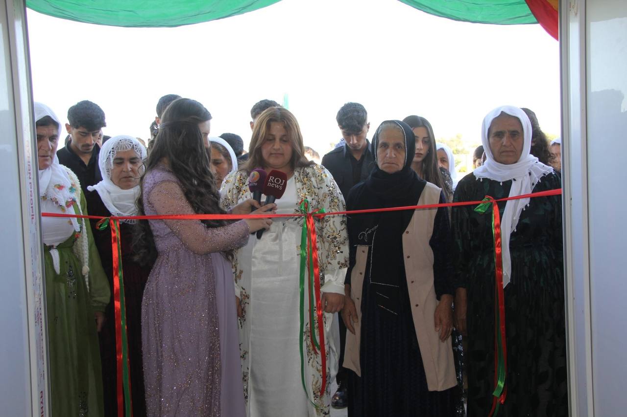 Mexmur Kampı sakinleri ve öğrencilerin hazır bulunduğu sanat sergisinin açılışı, devrim şehitleri anısına tutulan bir dakiklalık saygı duruşunun ardından başladı. Saygı duruşunun ardından Şehit Delil Atölyesi Üyesi Şirin Kara bir konuşma yaptı.