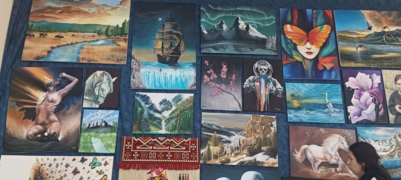 Konferans salonu kamp öğrencilerinin resimleri, tabloları, maketleri, şiirleri, eskizleri ve kampa ait resimlerle süslendi.