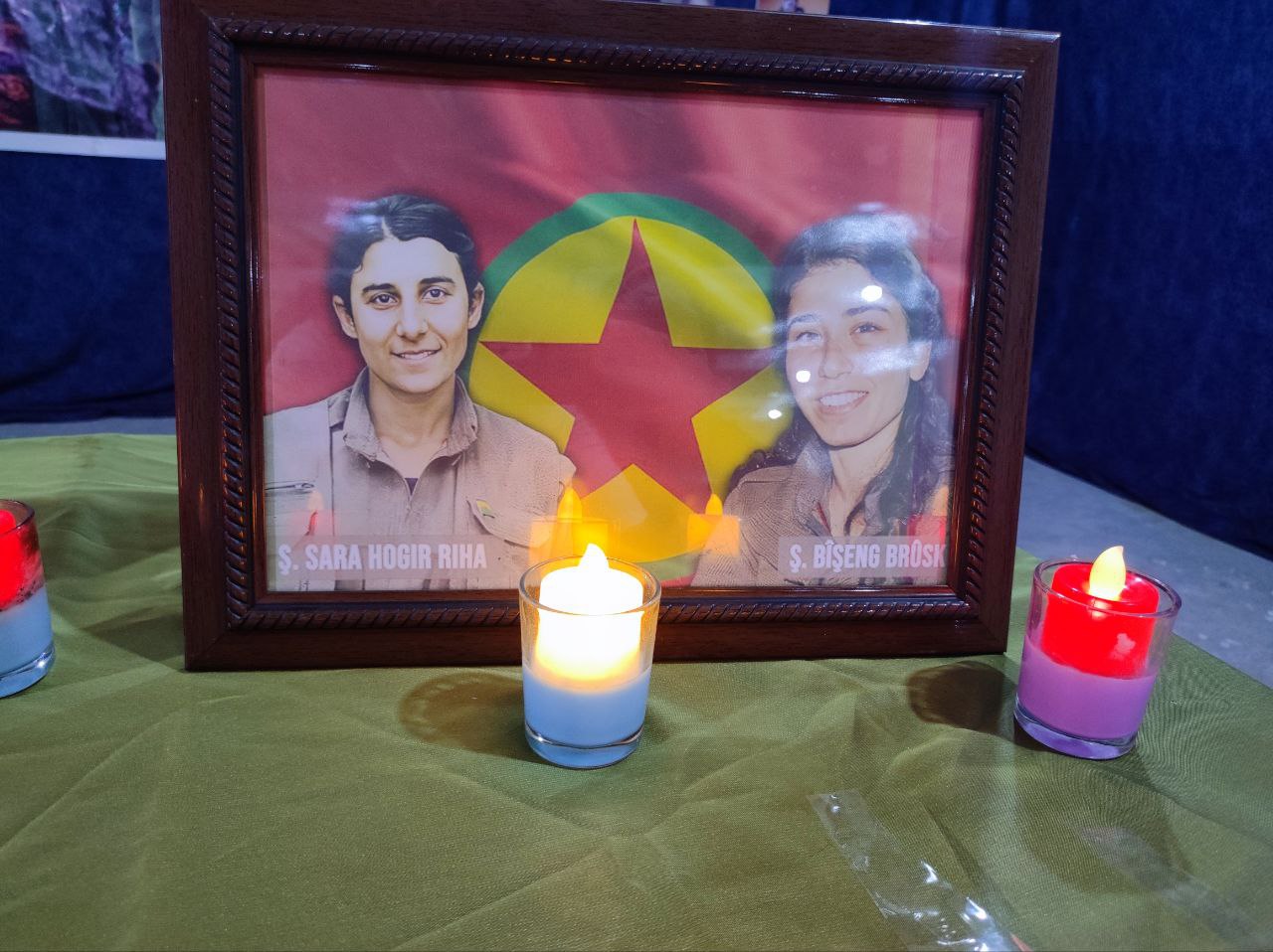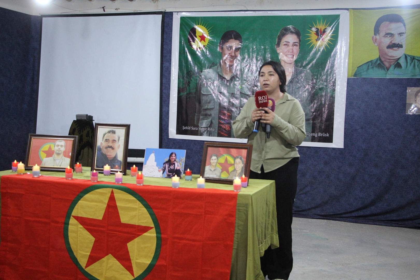 Viyan Budak konuşmasının başında halkı selamlayarak şunları söyledi: “Burada toplanmamızın amacı şehit Sara Hogir Riha, şehit Bişeng Birûsk, şehit Tolhildan ve şehit Vejin Jiyan’ı anmaktır.” Bu dört kahraman Önder Apo’nun ve Kürt halkının özgürlüğü için sonuna kadar mücadele etti.”
