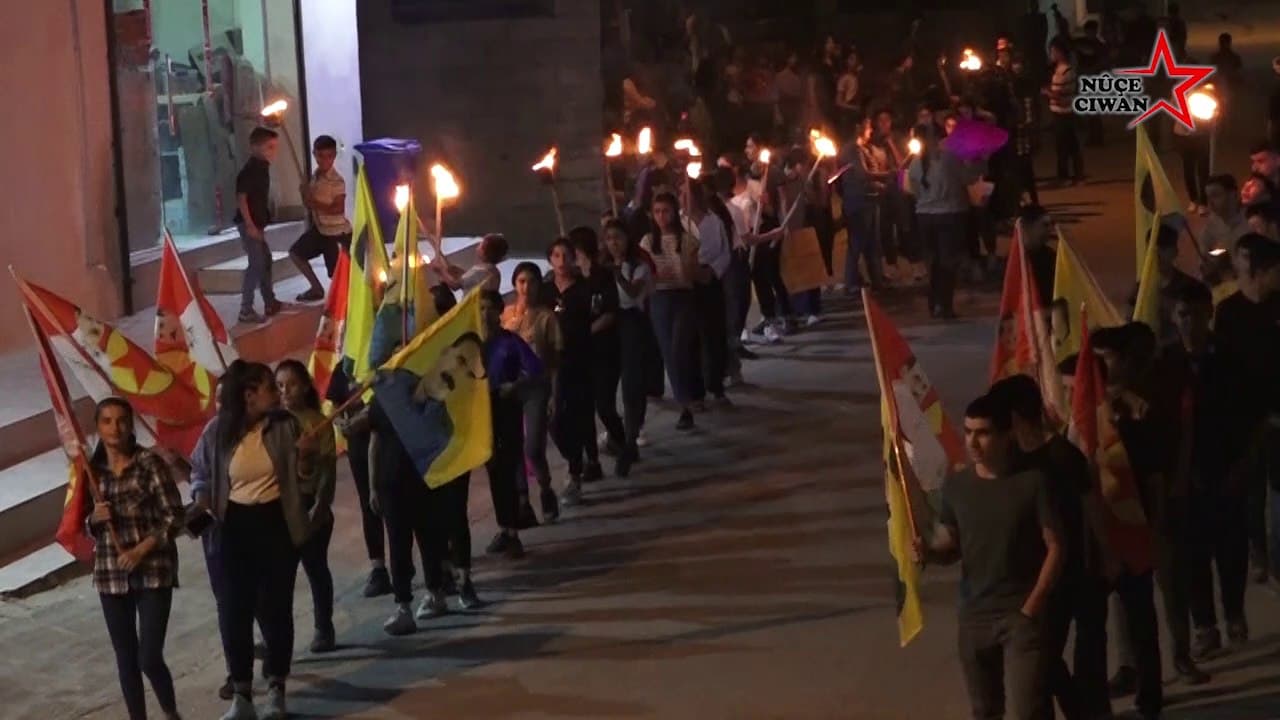 Mexmûr Genç Kadın Hareketi (TJCM) ve Mexmûr Gençlik Hareketi (TCM) öncülüğünde öğrenciler ve Mexmûr halkı Halklar Önderi Abdullah Öcalan'a yönelik 9 Ekim uluslararası komployu protesto etmek için meşaleli bir yürüyüş düzenledi.