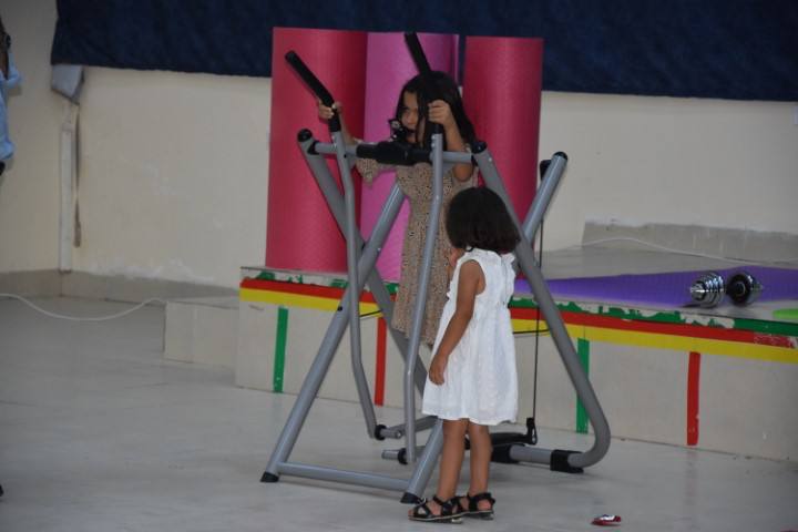 Konuşmanın ardından kurdele kesilerek spor salonunun açılışı gerçekleştirdi. Kamp sakinleri, açılışın ardından spor aletleriyle antrenman yaptı.