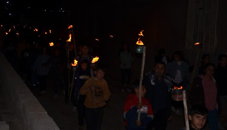 Şehit Rustem Cudi Mülteci Kampı’nda yaşayan gençler, PKK’nin 45’inci kuruluş yıl dönümü dolayısıyla meşaleli bir yürüyüş gerçekleştirdi.
