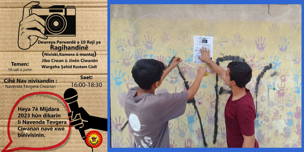 MEXMUR- Tevgera Ciwanên Mexmur ve Tevgera Jinên Ciwanên Mexmur (Gençlik Hareketi ve Genç Kadın Hareketi) öncülüğünde Mexmur gençleri için 10 günlük basın eğitimi kursu düzenlenecek. Gençler bu temelde kampın bir çok yerine duyuru kağıtları astı.