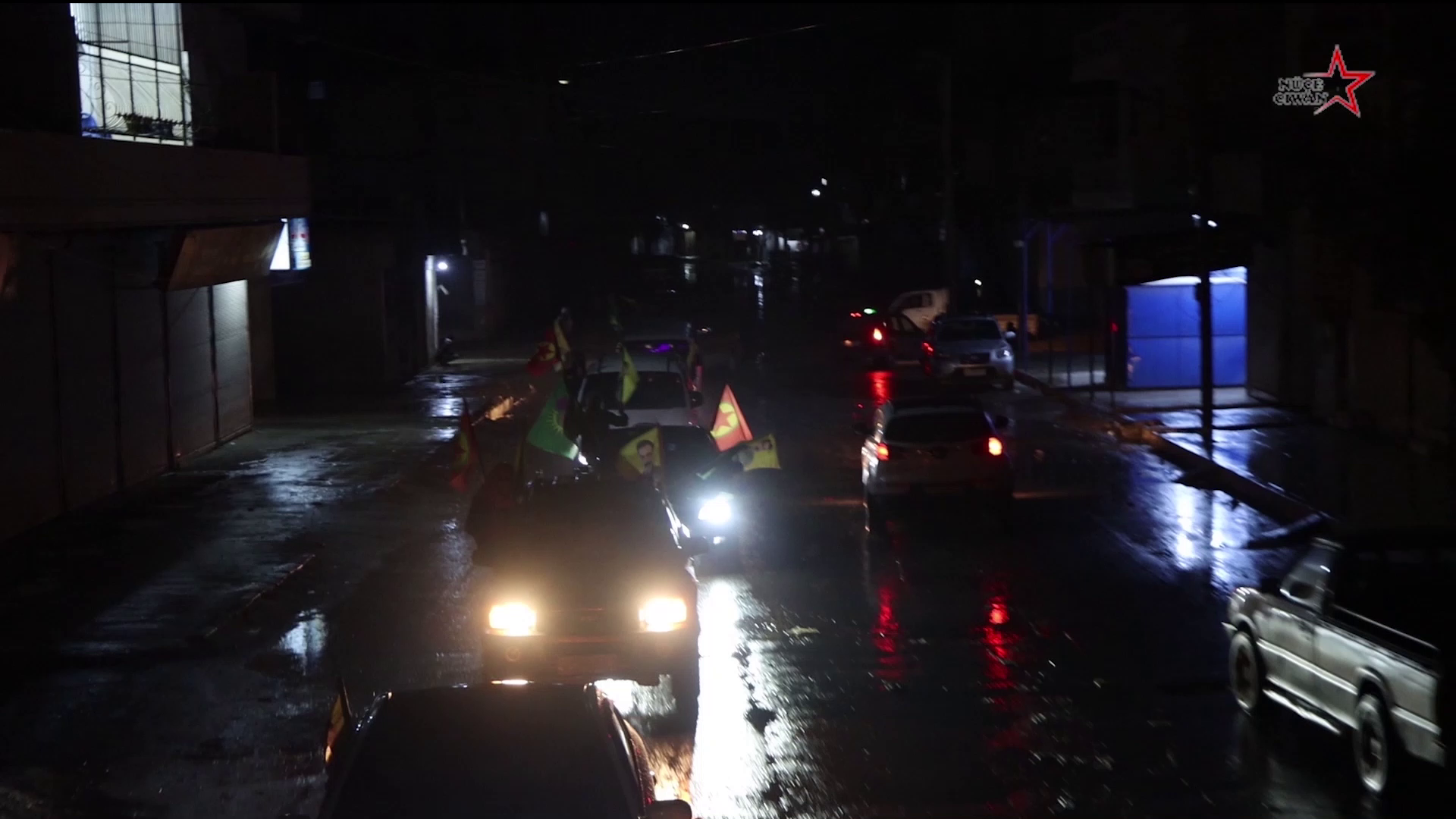 MINBIC- “Önder Apo’ya Özgürlük Kürt Sorununa Çözüm” hamlesini güçlendirmek ve ayrıca faşist, işgalci Türk Devletinin Kuzey Doğu Suriye’ye yönelik  saldırılarını protesto etmek amacıyla dün akşam saatlerinde Minbiç Devrimci Gençlik Hareketi ile Genç Kadınlar Birliği tarafından Minbiç şehir merkezinde konvoylu eylem gerçekleştirildi.