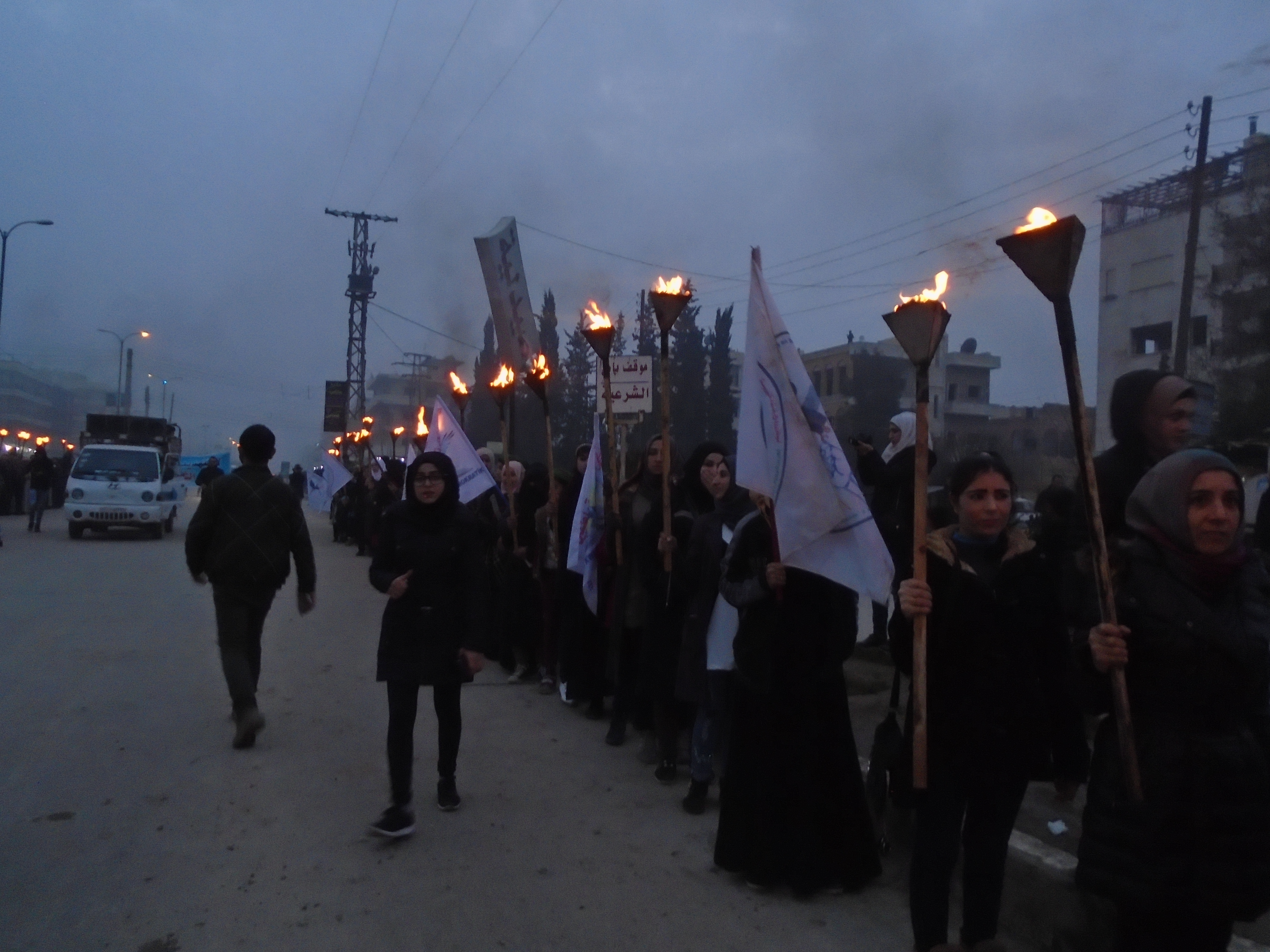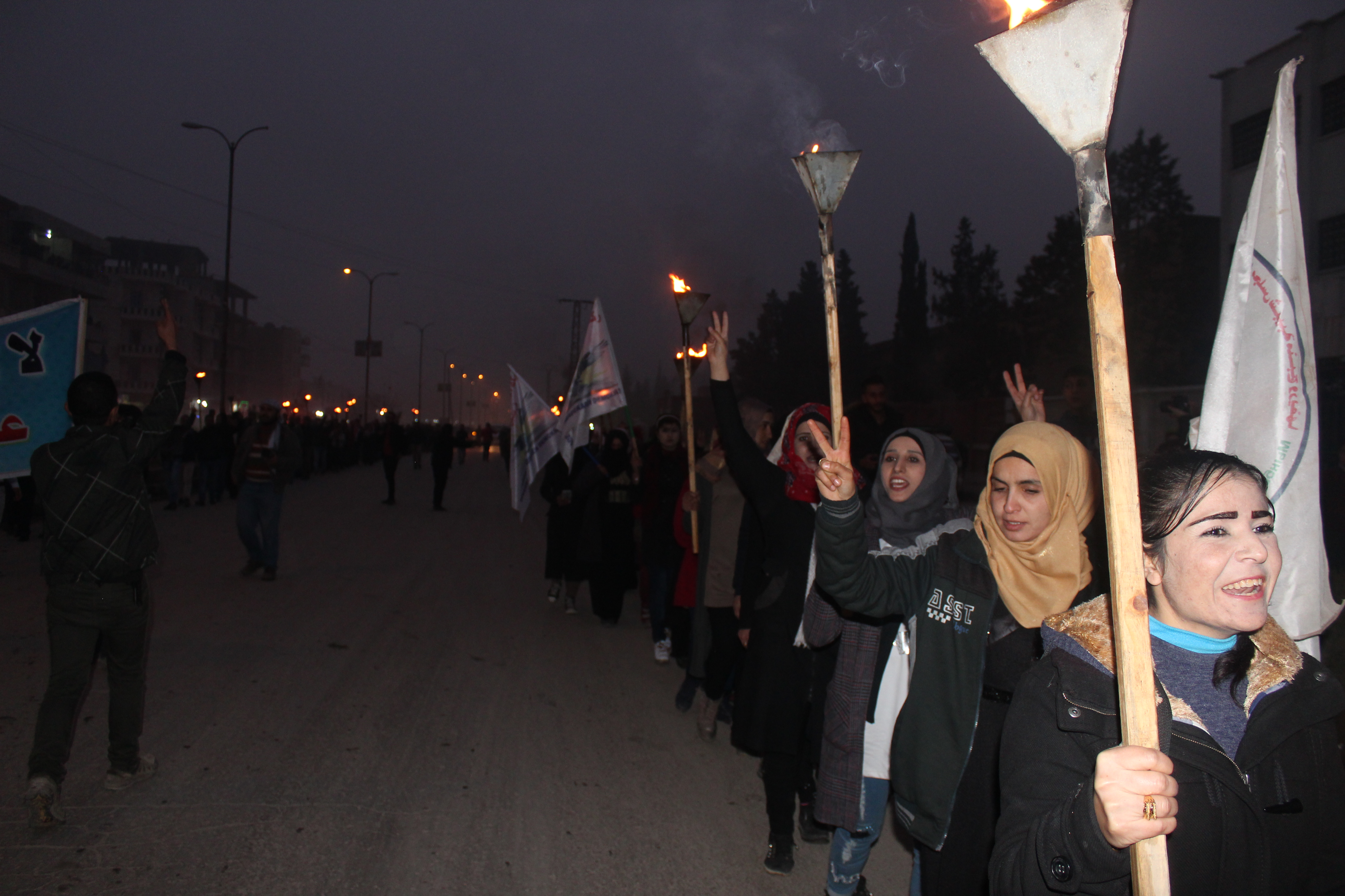 Minbic – İşgalci Türk devleti ve Çetebaşı Erdoğa’nın işgal tehditlerine karşı Minbiç gençliği meşaleli yürüyüş eylemi gerçekleştirdi. Yürüyüş Fırat hastahanesinden Gençlik Merkezine kadar sürdü.