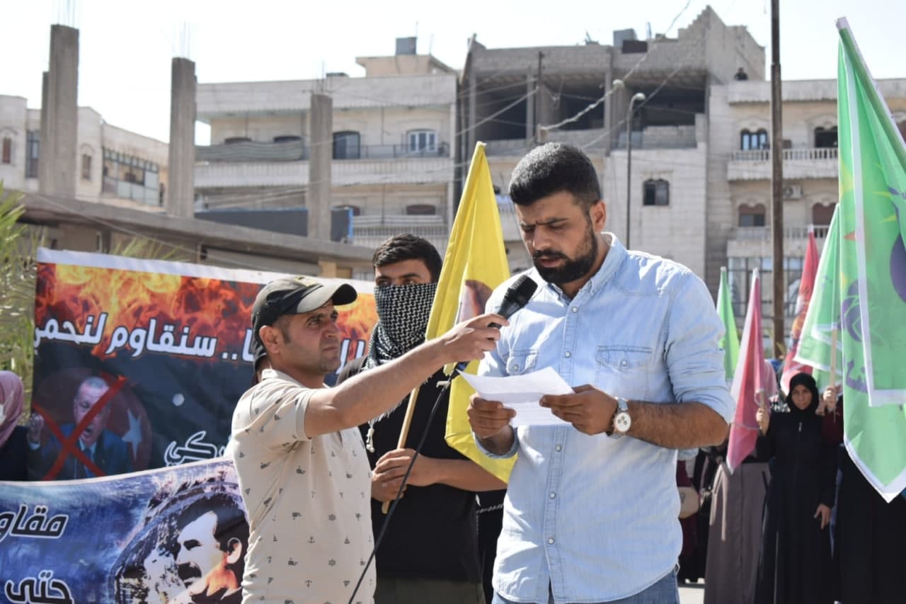 Yürüyüş Meseb dört yolundan mitinge dönüştü. Mitingde Minbic Gençlik ve Spor Komitesi eşbaşkanı Mihemed El-Hesen basın metnini okudu.