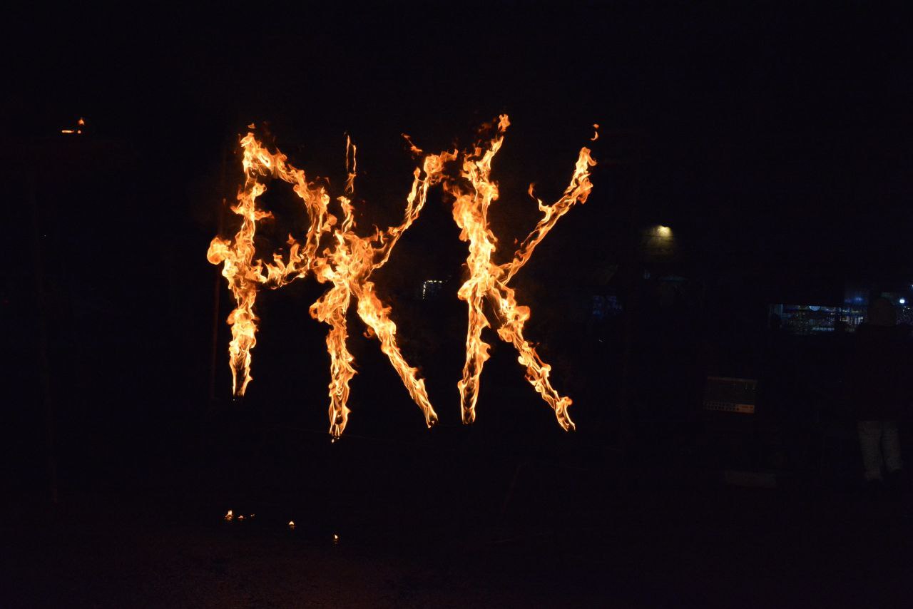 Önder APO ve gerilla derinişini selamlayan sloganların atıldığı etkinlikte ateşle “APO” ve “PKK” harfleri yazıldı.