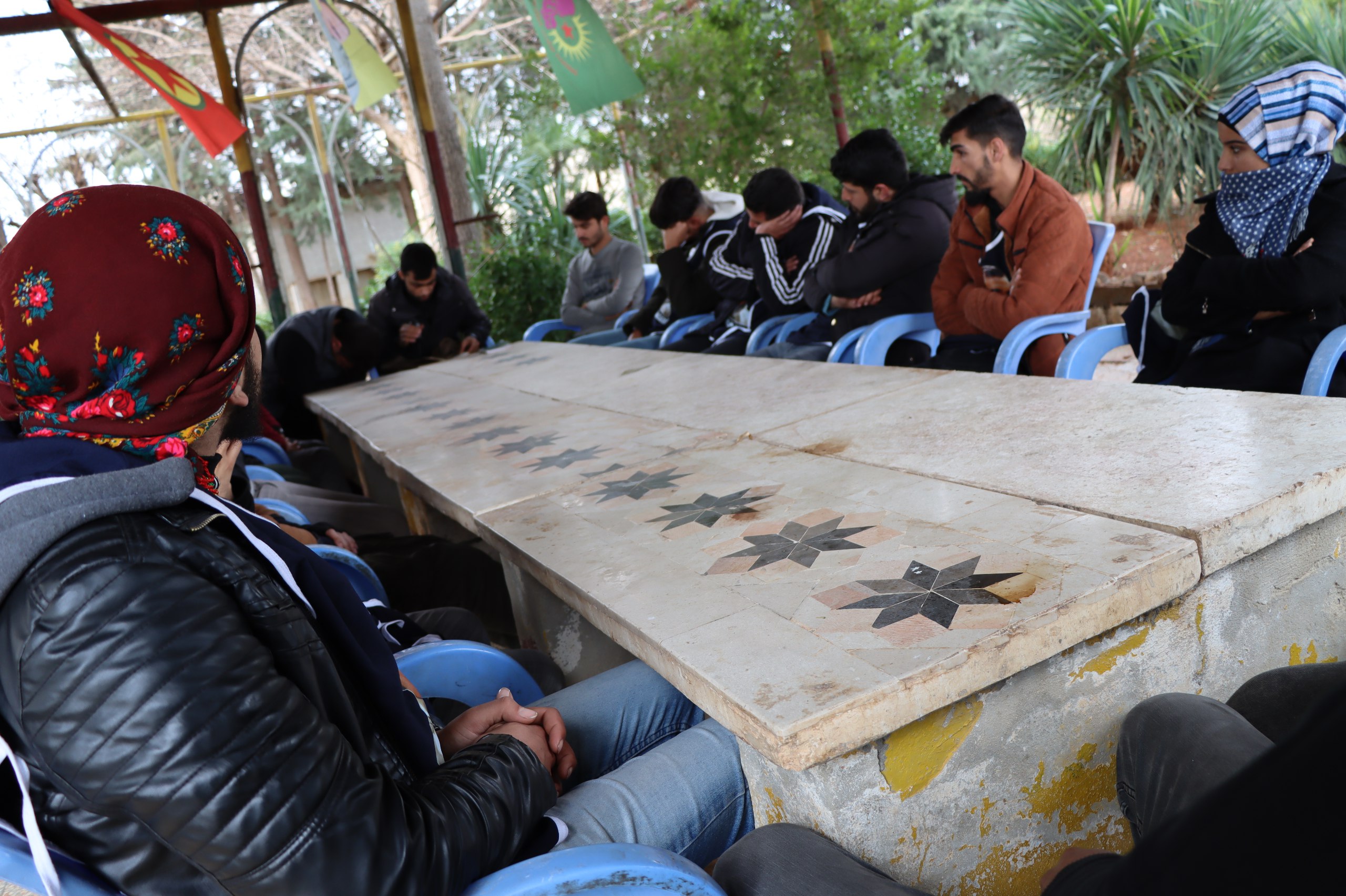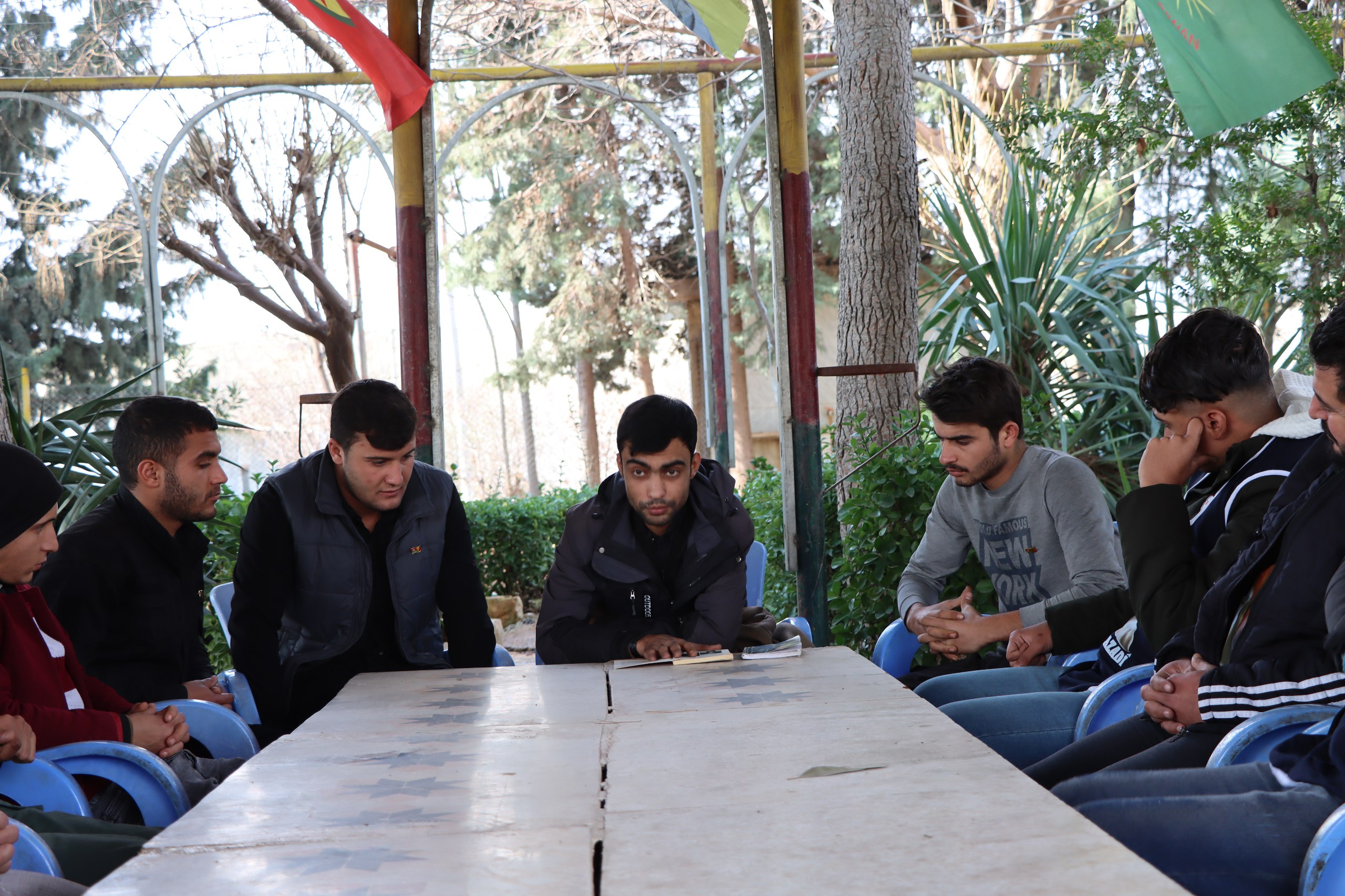 Okuma grubuna yaklaşık 25 genç katıldı. Okumaya başlanmadan önce devrim şehitleri anısına saygı duruşunda bulunuldu. Daha sonra Minbiç Devrimci Gençlik Hareketi eş sözcüsü Ahmed Al Jumeili tarafından “Gençlik Hareketinin ellinci zafer yılı” kitabı okundu. Dün sabah saatlerinde başlayan okuma grubu akşama kadar devam etti. Kitabın bitirilmesi ardından kitaba dair tartışmalar dile getirildi. Okumaya katılan gençler Önder Apo’yu, PKK Hareketini ve mücadelesini, Özgürlük Mücadelesi şehitlerinin daha iyi tanınması açısından tüm gençlerin bu kitabı okuması gerektiğine dikkat çekti.