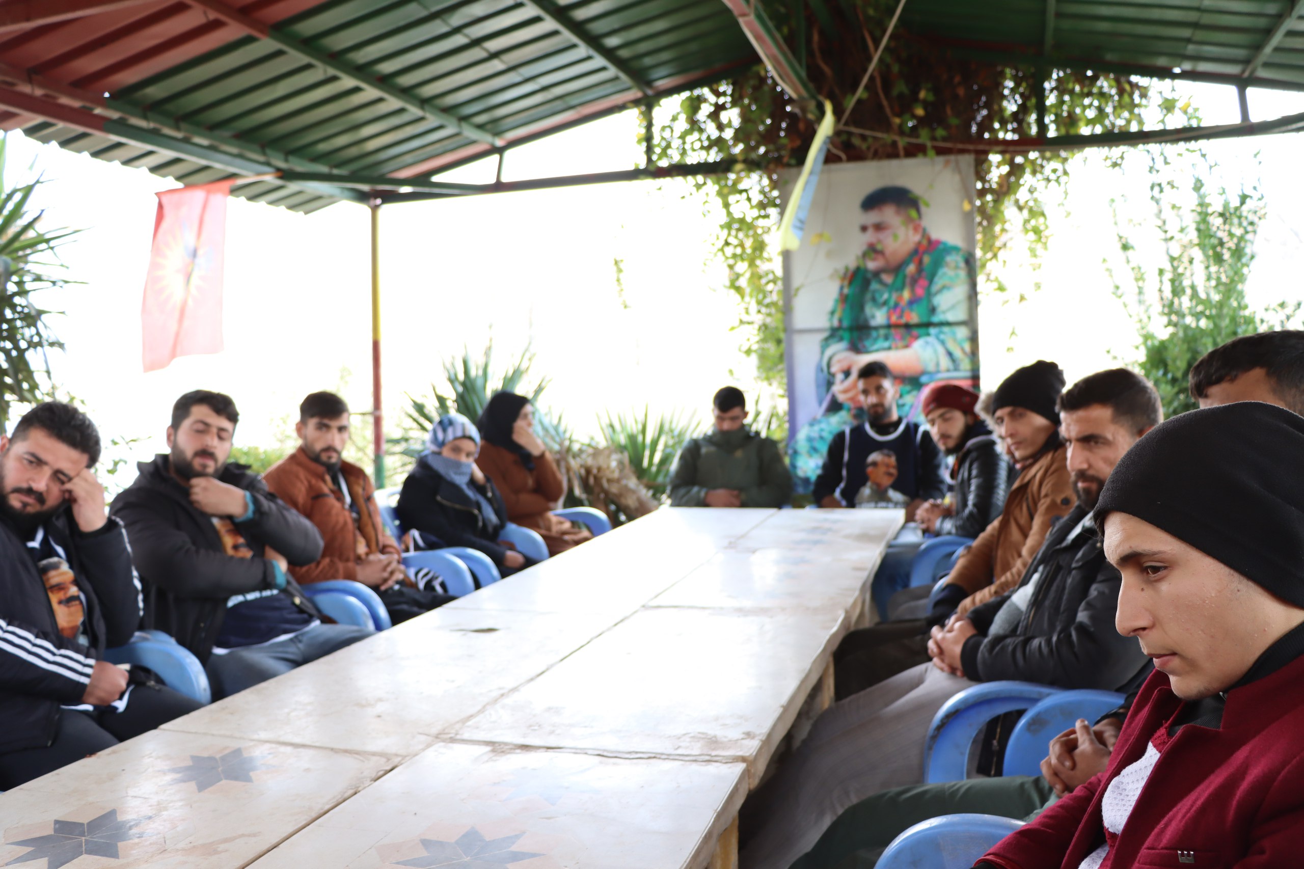MINBIÇ “Önder Apo’ya Özgürlük, Kürt Sorununa Çözüm” hamlesi çerçevesinde Devrimci Gençlik Hareketi ve Minbic Genç Kadınlar Birliği, Önderlik bahçesinde bir araya gelerek “Gençlik Hareketinin ellinci zafer yılı” kitabını okudu.