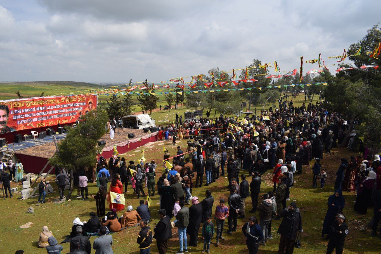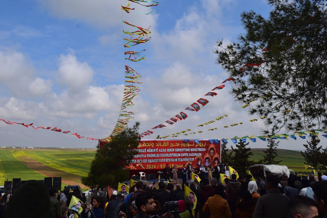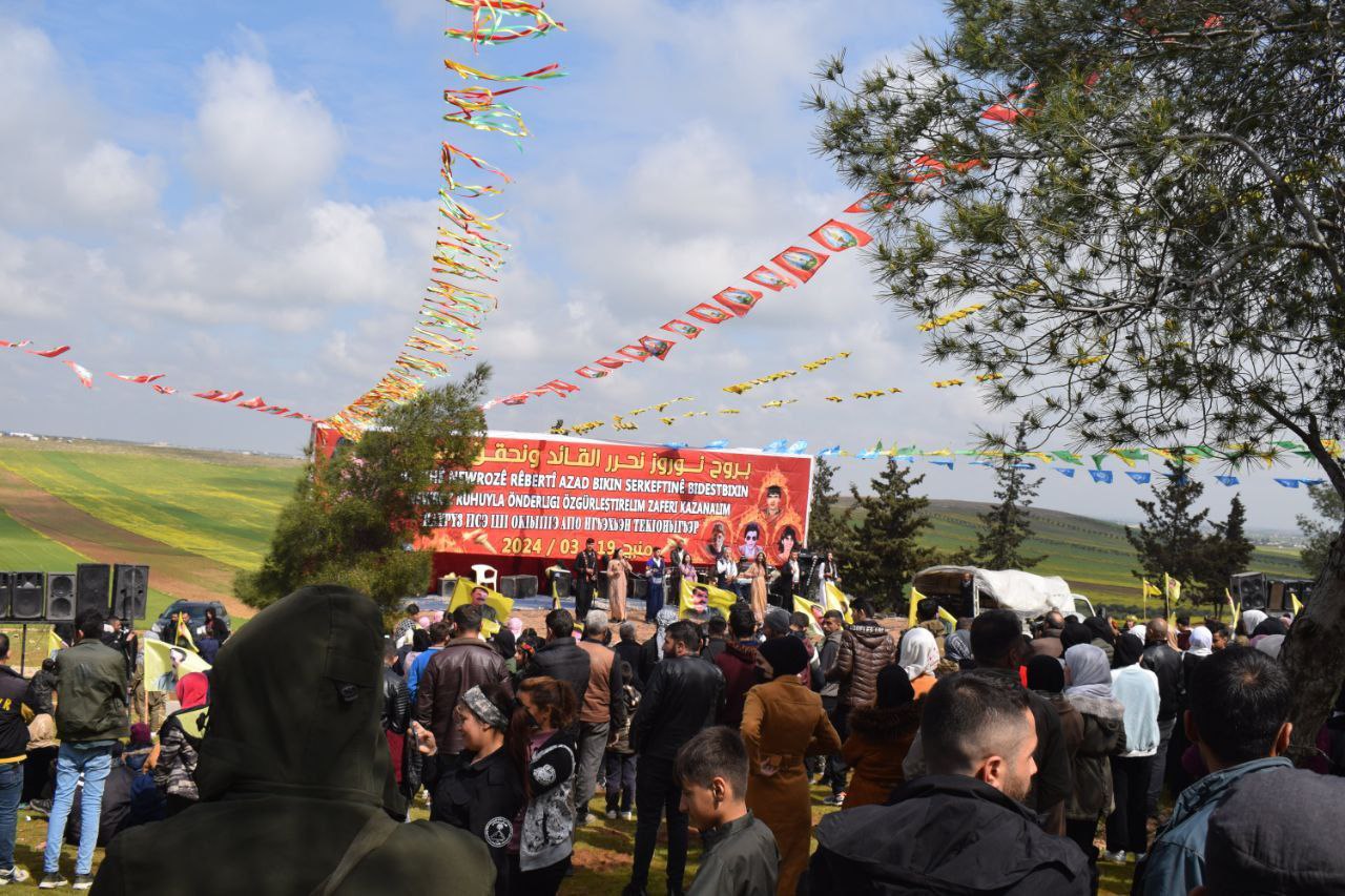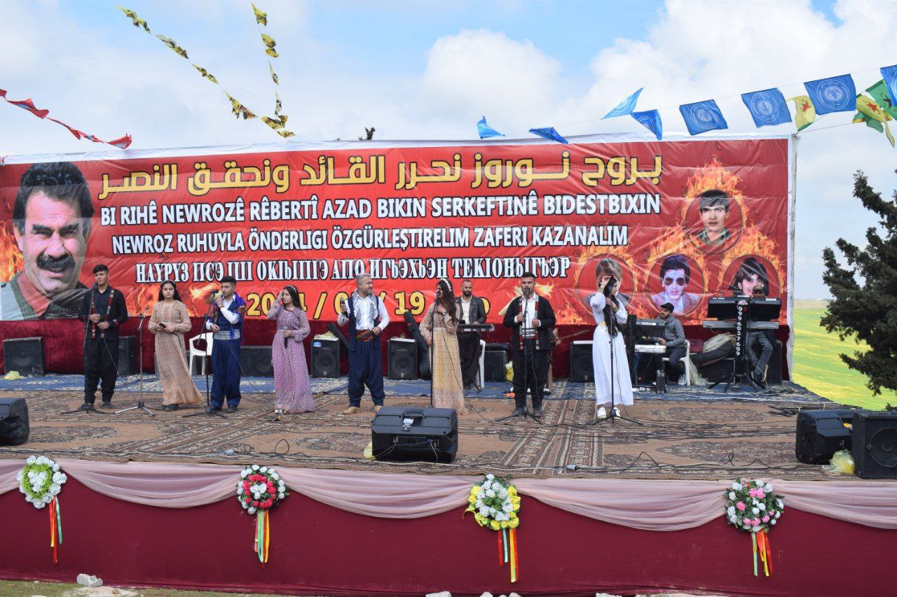 Newroz alanı, Önder APO’nun ve özgürlük şehitlerinin posterleri süslendi. Sahneye “Önder APO’ya özgürlük, Kürt sorununa çözüm” yazılı pankart asıldı.