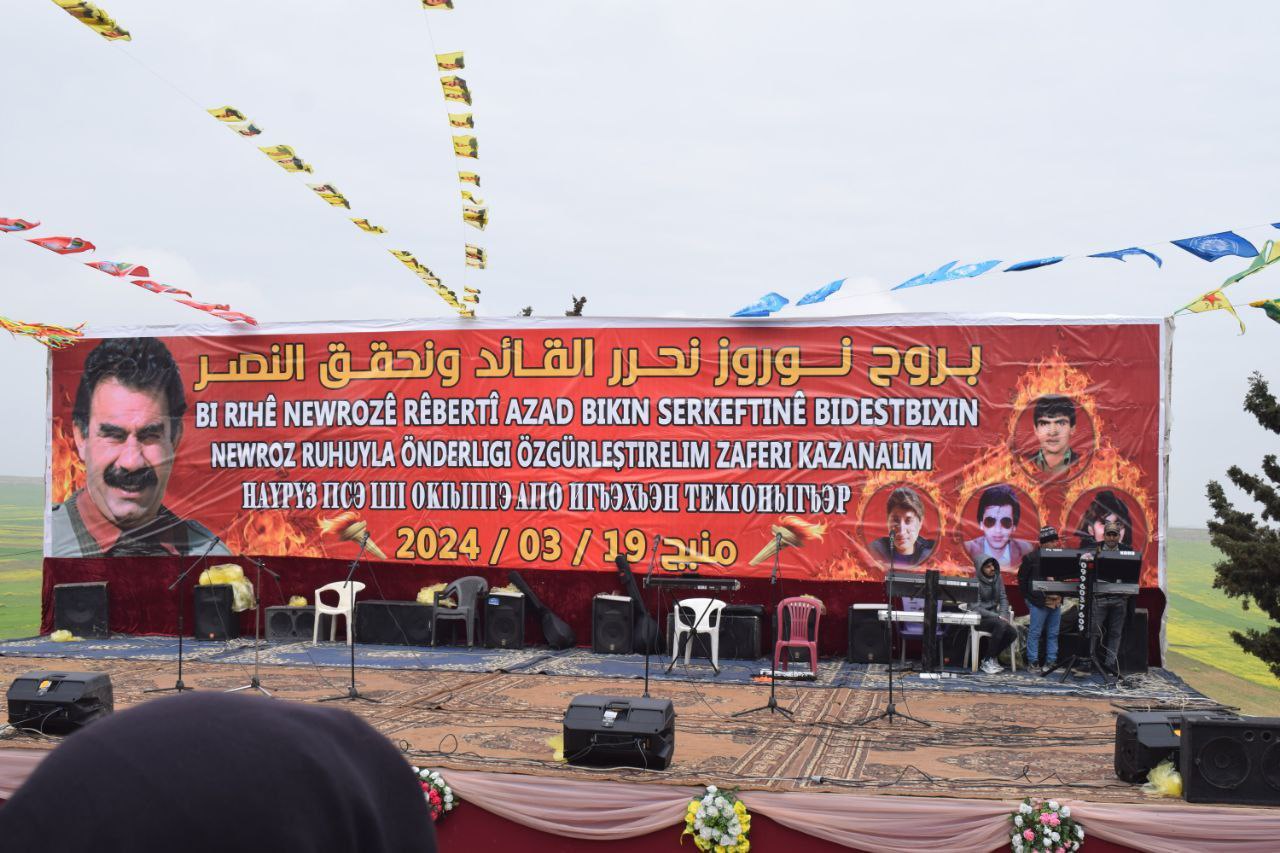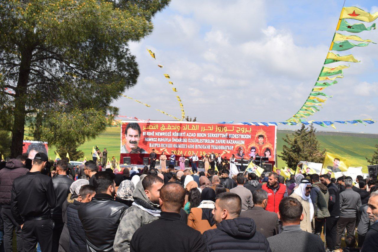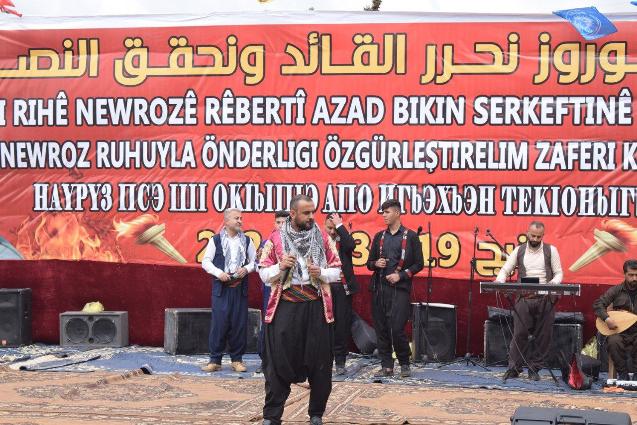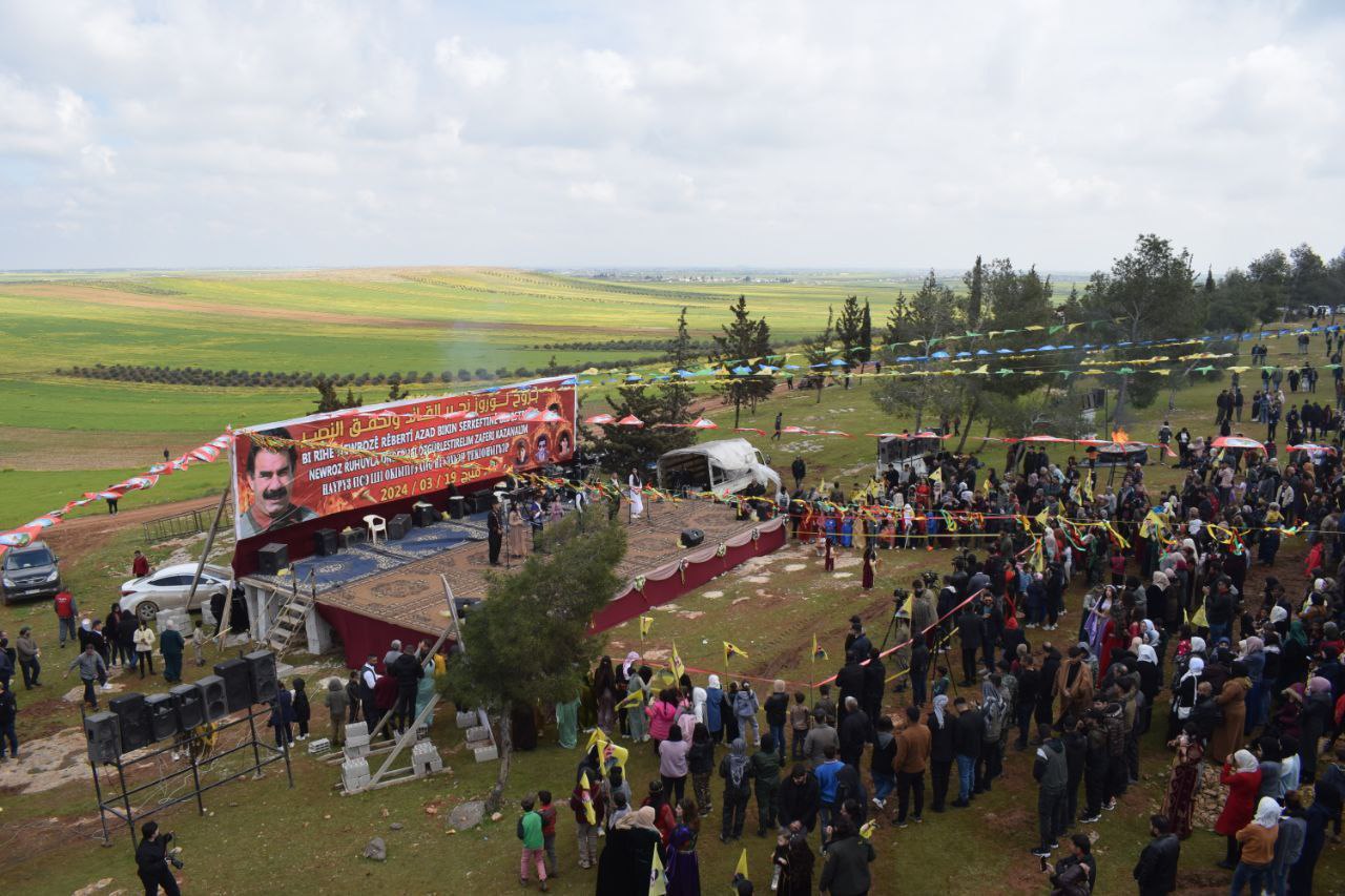 Newroz alanı, Önder APO’nun ve özgürlük şehitlerinin posterleri süslendi. Sahneye “Önder APO’ya özgürlük, Kürt sorununa çözüm” yazılı pankart asıldı.