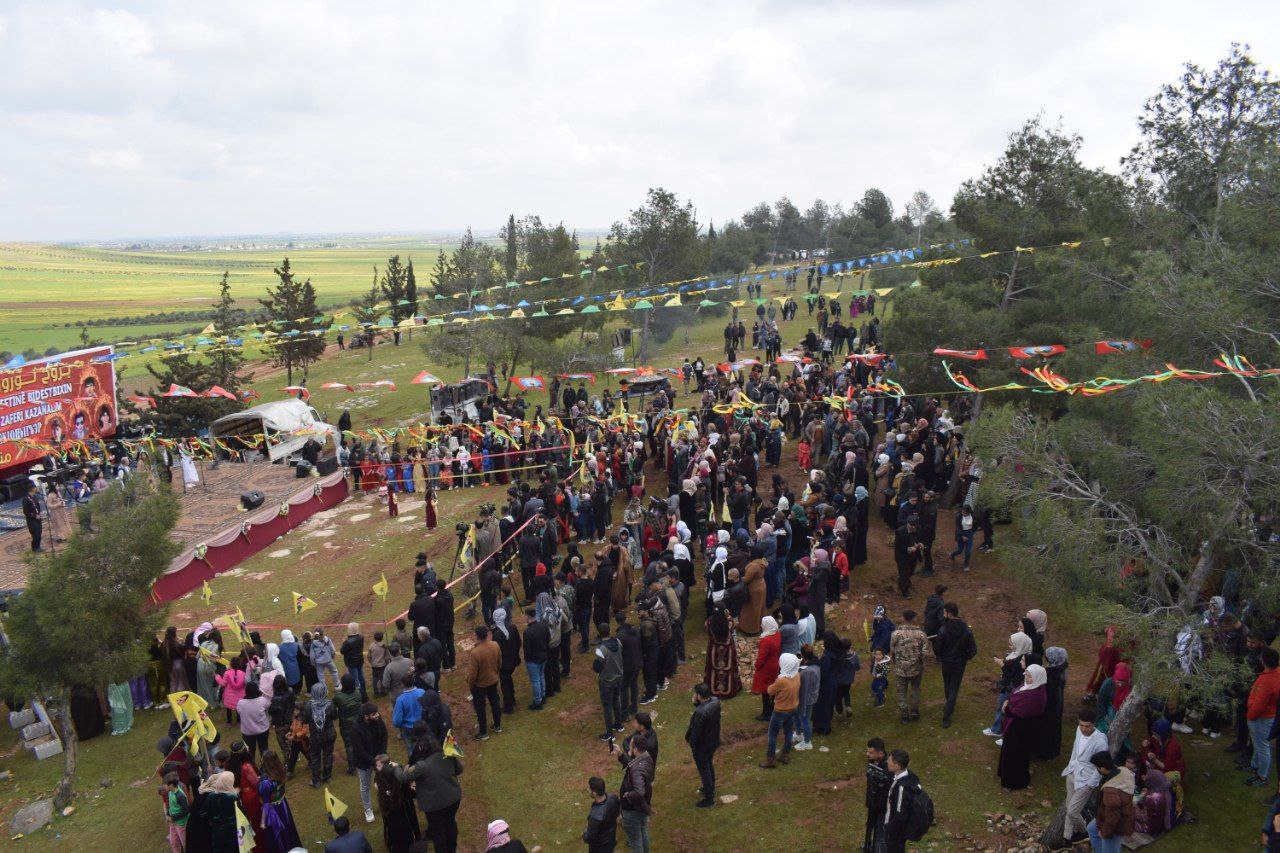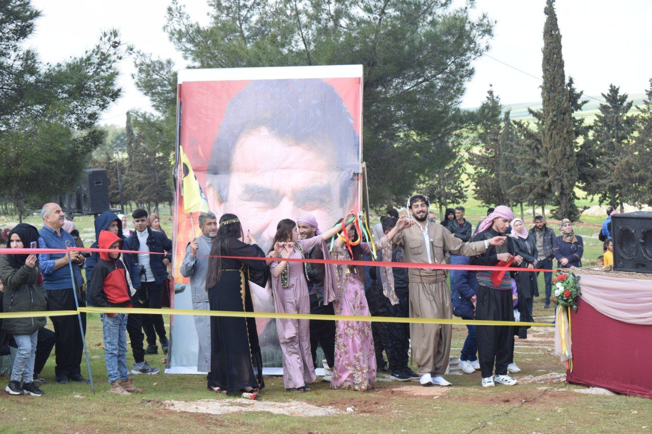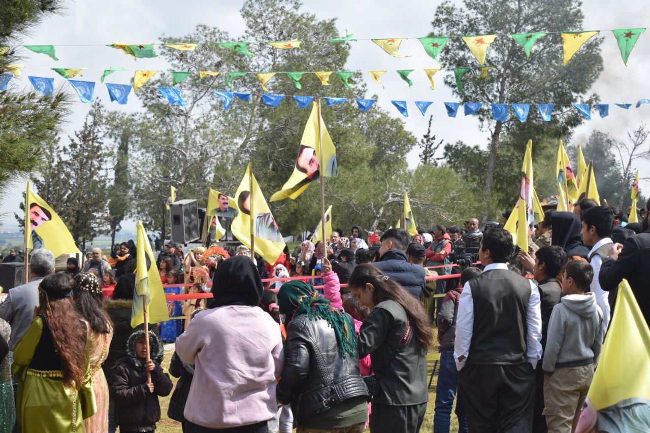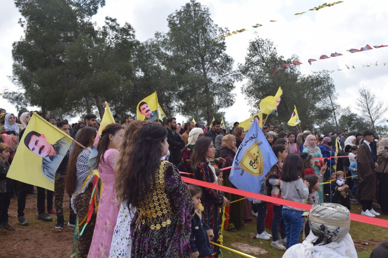 Newroz alanı, Önder APO’nun ve özgürlük şehitlerinin posterleri süslendi. Sahneye “Önder APO’ya özgürlük, Kürt sorununa çözüm” yazılı pankart asıldı.