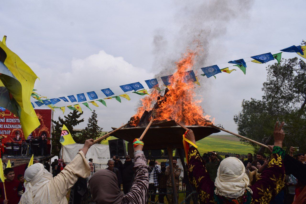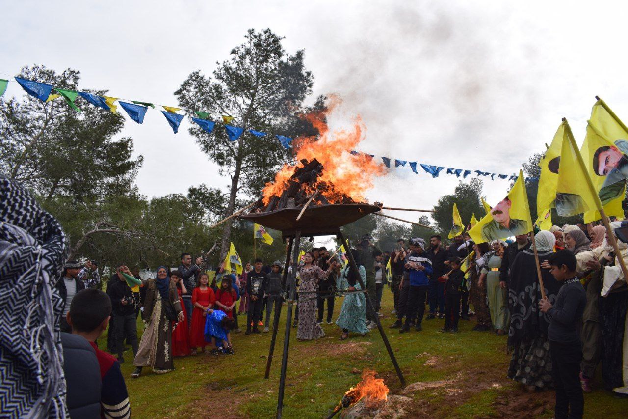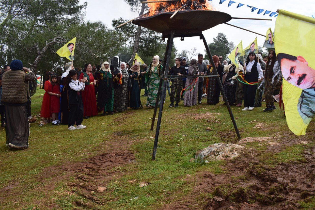 Newroz Meşalesi devrimci şarkılar ve “Bê serok jiyan nabe” sloganları eşliğinde şehit anneleri tarafından yakıldı.