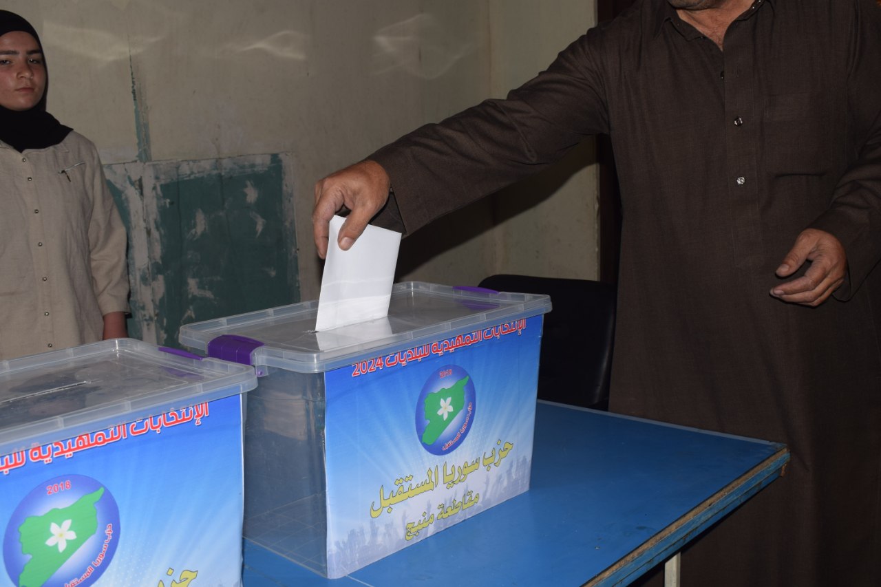 MİNBİÇ – Minbiç şehrinde 30 Mayıs’ta yapılacak belediye seçimleri için Suriye Gelecek Partisi belediye adayları seçimleri başladı. Oy verme Gençlik ve Spor merkezinde yapılıyor.