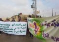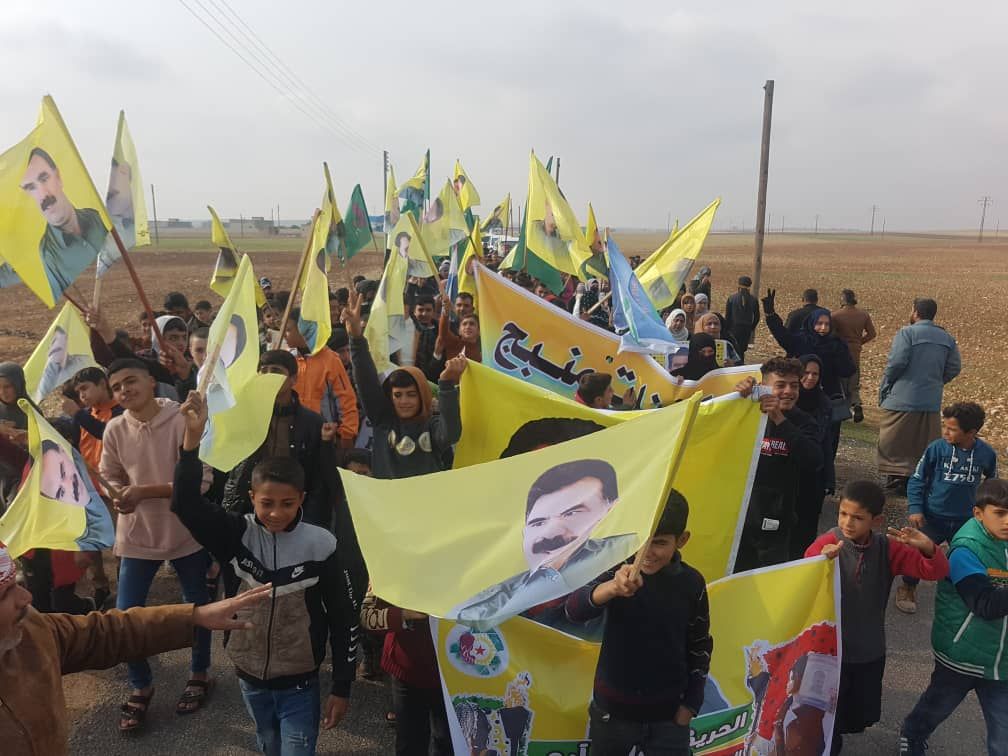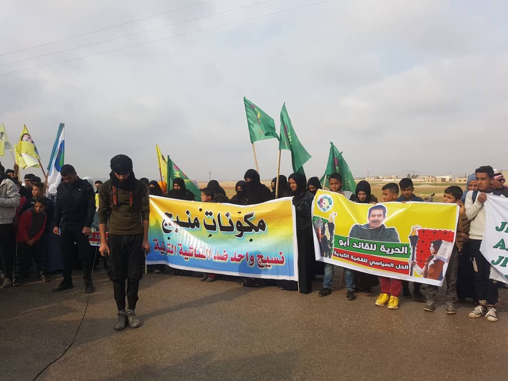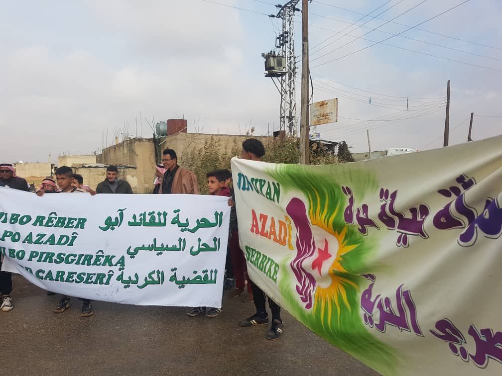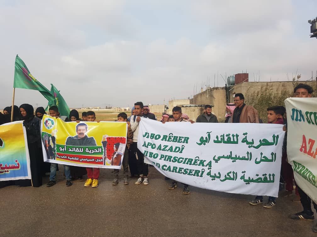 MINBIC – Bugün Yekitiya Jinên Ciwan öncülüğünde Minbic kırsalı El-Kadro köyünün Til Havdan hattında toplu yürüyüş düzenledi. Tel Havdan halkı, Önder Apo’ya yönelik tecridi kınadı ve Marmara Denizi’ndeki İmralı Adası’nda yaşanan depremin ardından Önder Apo’nun durumunun öğrenilmesini talep etti.