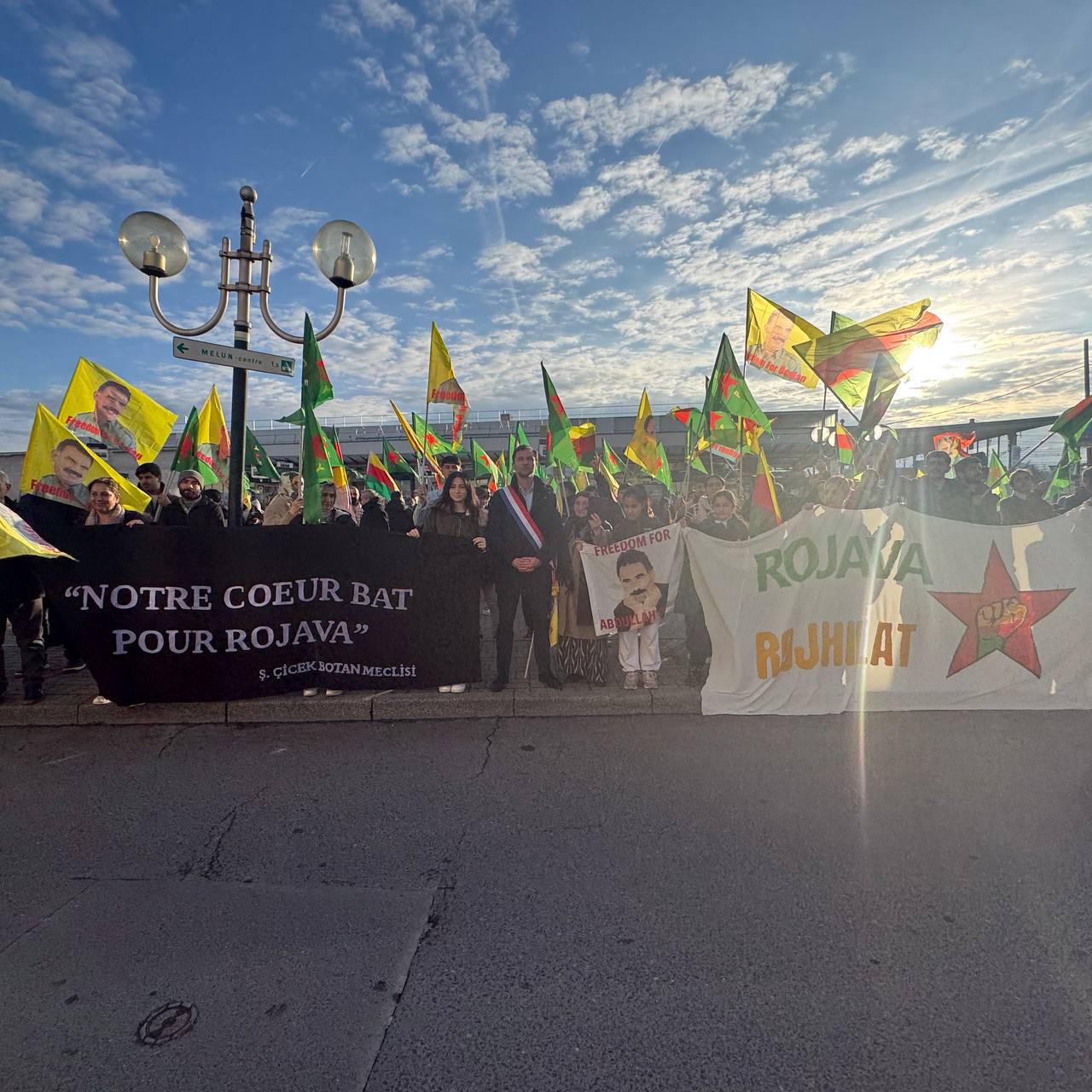 Melun Halk Meclisi Eşbaşkanı Çetin Wan, saldırılara ilişkin basın açıklaması yapmak üzere konuşma gerçekleştirdi. Konuşma sırasında kitle zaman zaman sloganlar atarak desteğini gösterdi. Çetin Wan mesajını kitleye ilettikten sonra Rojava’ya desteğini bir kez daha vurguladı ve sözü Marne Valle Milletvekili Arnaud Saint-Martin’e bıraktı.