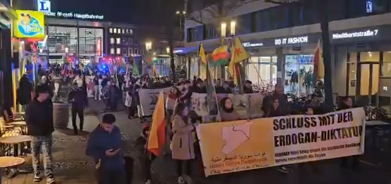 YPG, YPJ ve TEV-DEM bayrakları ve faşist Türk devleti ve SMO çetelerinin Rojava’ya yönelik işgal saldırılarına dikkat çeken pankartlar taşıyan Kürdistanlılar, yürüyüş boyunca “Terörist Erdoğan, diktatör Erdoğan” sloganları attı.