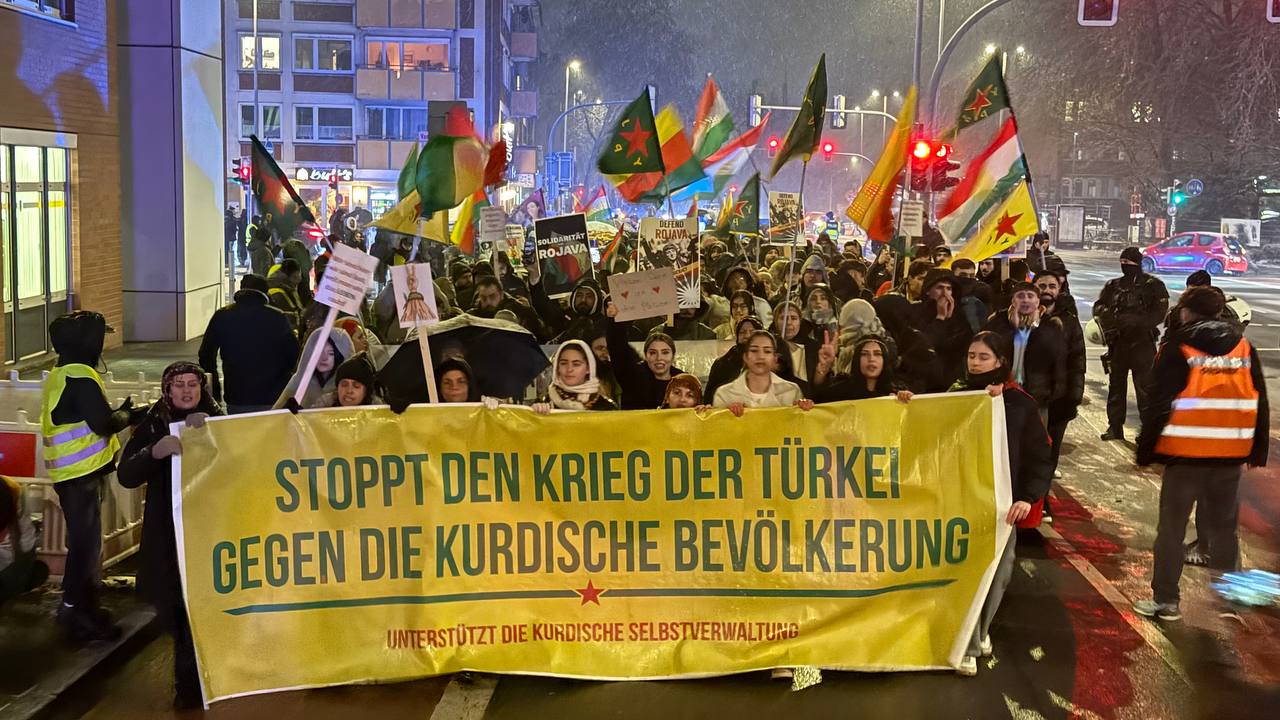 MÜNSTER – Almanya’nın Münster kentinde binlerce Kürdistanlı, Rojava’ya yönelik saldırıları protesto etmek amacıyla bir kez daha alanlara çıktı.