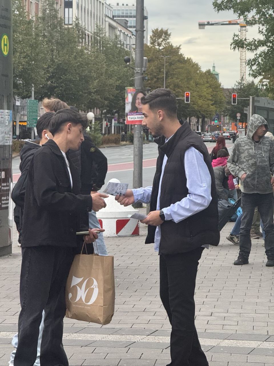 MÜNSTER – Almanya’nın Münster kentinde, 9-13 Eylül tarihlerinde gerçekleştirilecek olan Uzun Yürüyüş etkinliği öncesinde, TCŞ Münster Gençliği HBF (ana tren garı) önünde bilgilendirme standı açtı.