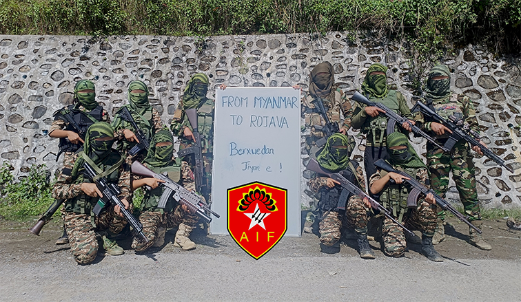 SAC cuntasına (Myanmar’ı yöneten işgalci) karşı Myanmar halkıyla omuz omuza mücadele eden enternasyonalistler olarak, Demokratik Modernite için mücadele eden dostlarımızın felsefesini esas alıyoruz: “Berxwedan Jiyan e!”
