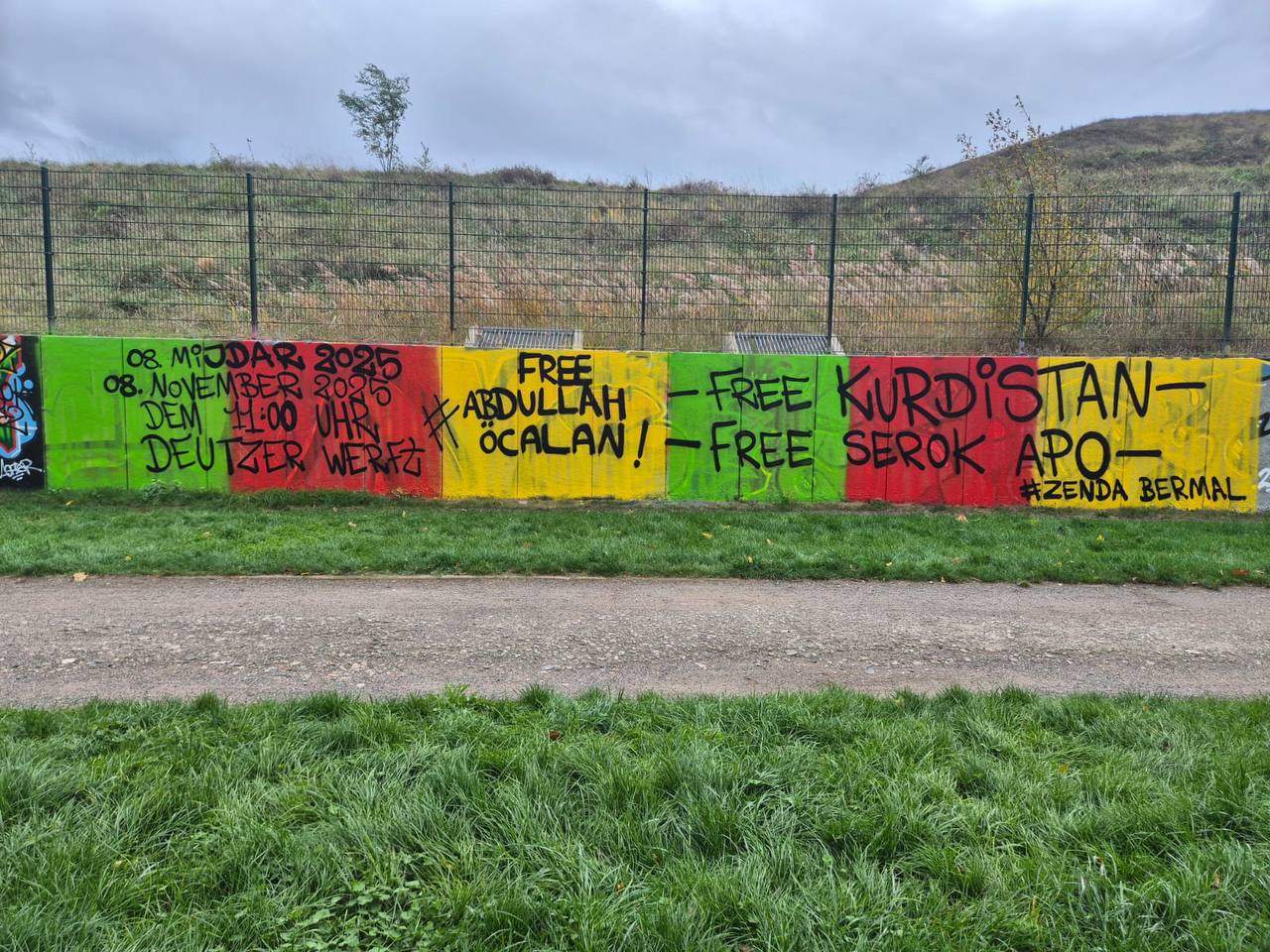 Köln’de yürüyüşe davet amaçlı yazılama eylemi gerçekleştiren TCŞ üyesi gençler eylemin ardından yaptıkları açıklamada, “Önder APO özgür olana dek sokaklarda, meydanlarda ve her alanda mücadelemizi sürdüreceğiz” mesajını verdi.