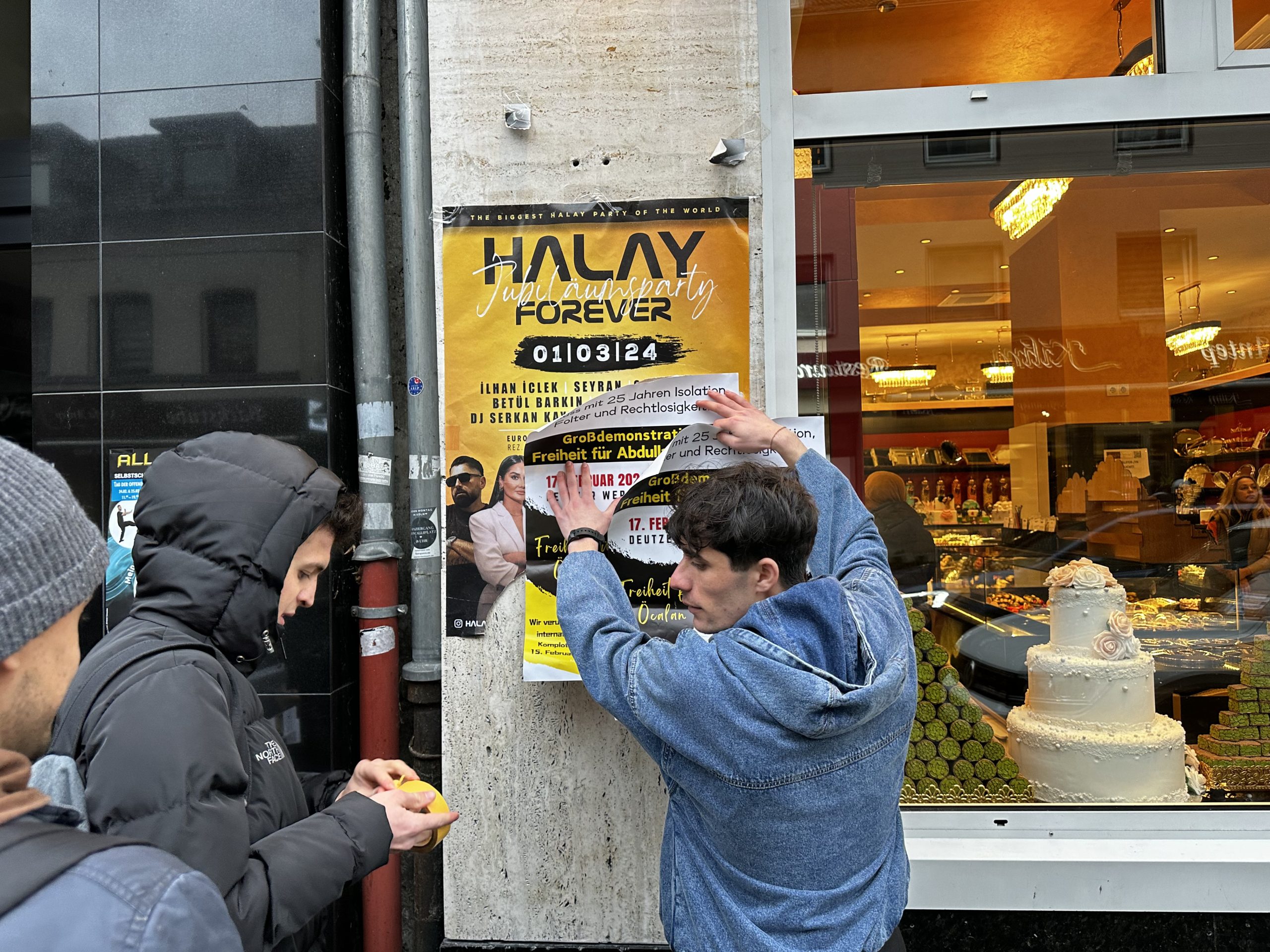 Toplantı ardından halka birlikte 17 Şubat Köln yürüyüşü için bildiri dağıtımına çıkan gençler, birçok esnafa, ev postalarına, araba silgeçlerine, pano ve tabelalara bildiler bıraktı.