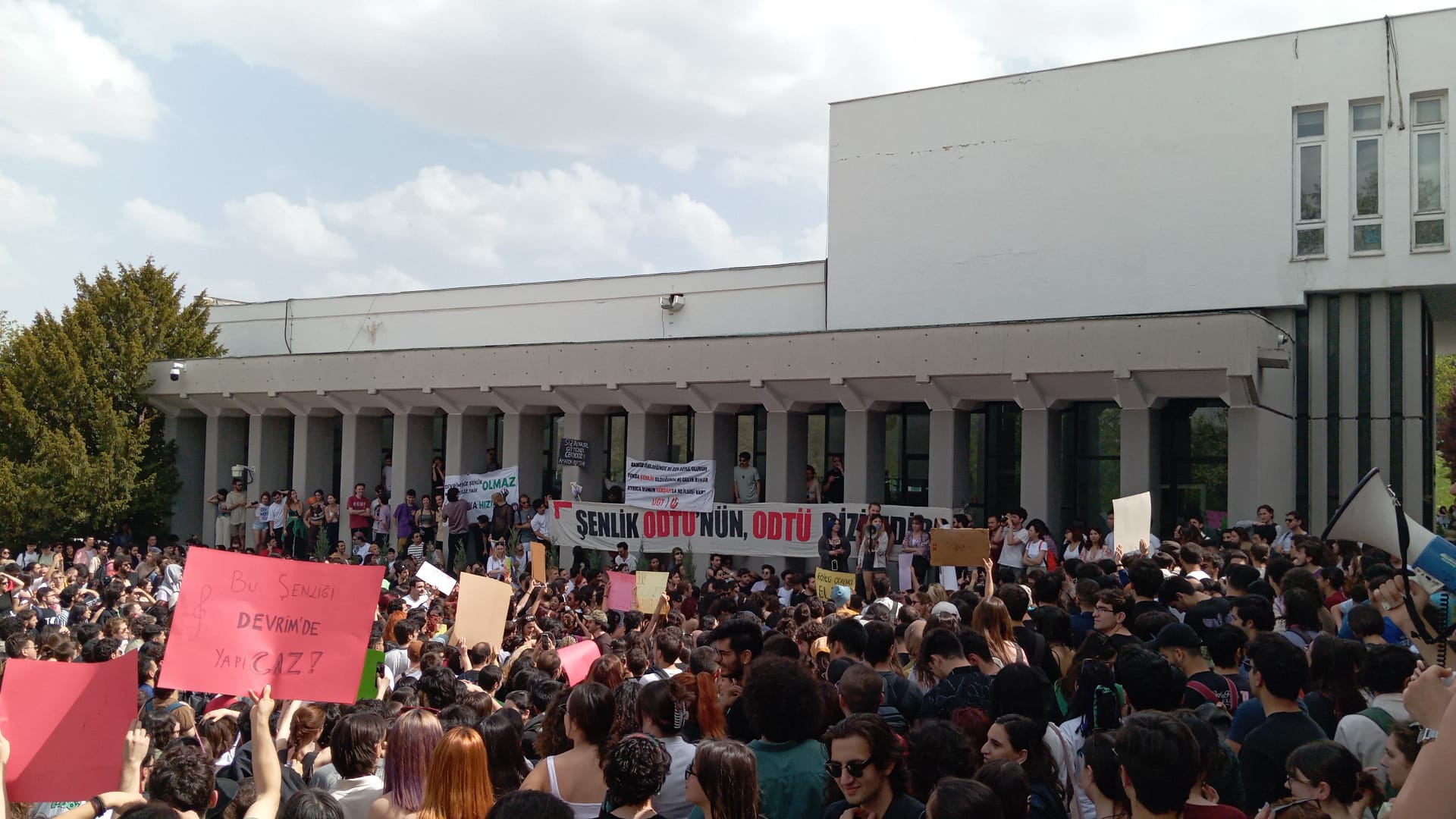 HABER MERKEZİ- Kayyum rektörün Bahar Şenliği’nin Devrim’de yapılmasını engelleme çabalarına karşı yüzlerce ODTÜ’lü rektörlüğün önünde toplandı