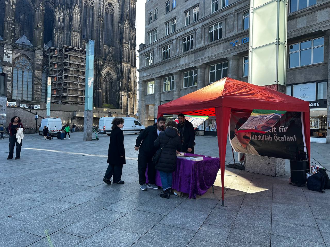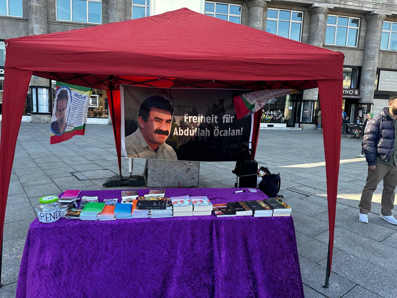KÖLN – TekoJIN (Jinên Ciwanên Tekoşer) ve TCŞ (Tevgera Ciwanên Şoreşger) üyesi gençler, Önder APO üzerinde ki ağırlaştırılmış mutlak tecride dikkat çekmek ve Önder APO’nun fiziki özgürlüğü için Önder APO’nun kitaplarından ve çözümlemelerinden oluşan stant açtı.