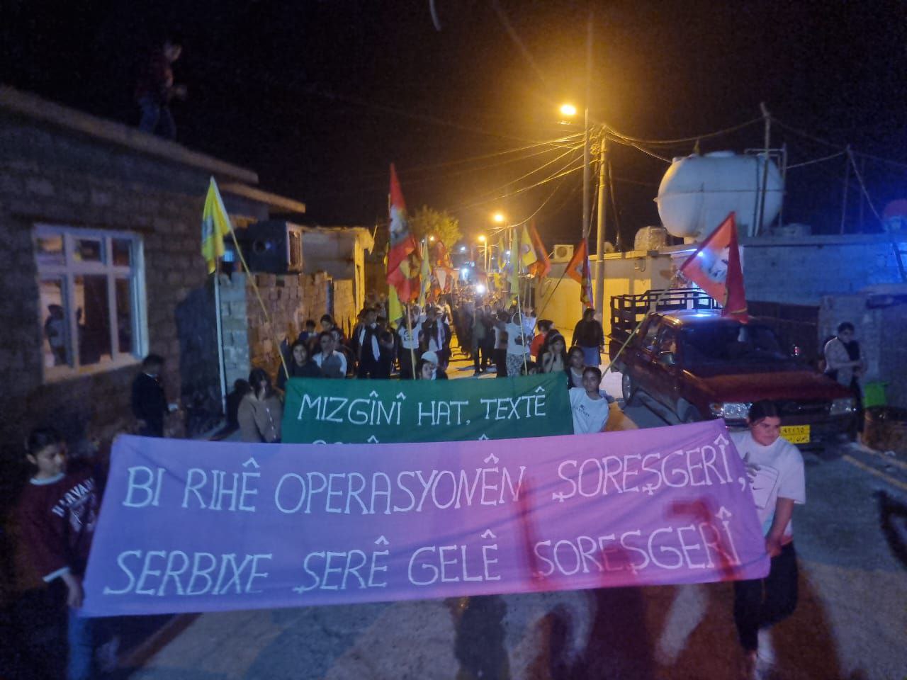 • Şemzînan’da Yurtsever Gençlik Öncülüğünde Rojava İçin Meşaleli Yürüyüş