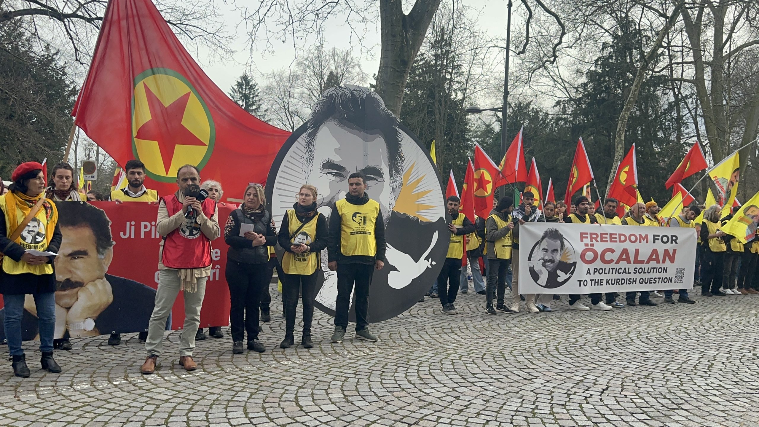 HABER MERKEZİ – “Önder APO’ya Özgürlük Kürt Sorununa Çözüm” hamlesi kapsamında, 22 Ocak’ta Fransa’da başlayan Paris Yürüyüşü, 11 Şubat’ta Basel’den başlayan Enternasyonel Yürüyüşü ve 9 Şubat’ta Almanya Mannheim’de başlayan Özgürlük yolculuğu yürüyüşçüleri, Strasboorg’ta Avrupa Konseyi önünde basın açıklaması gerçekleştirdi.