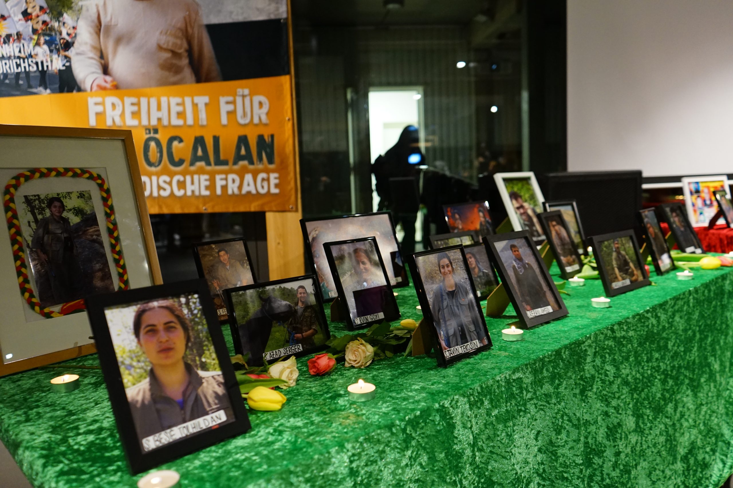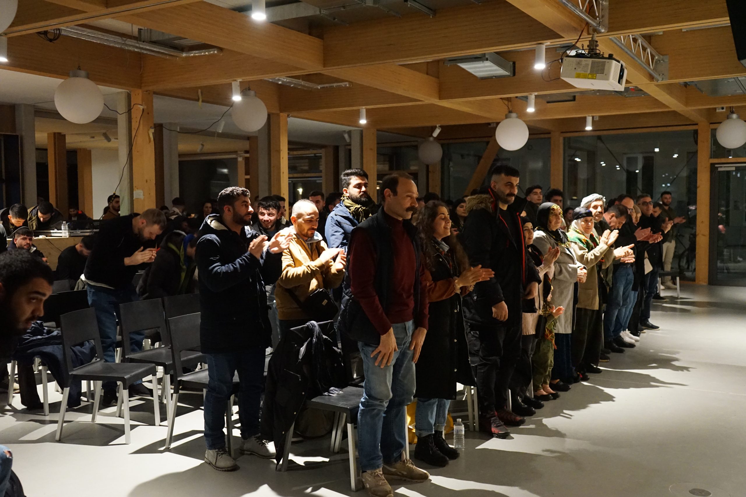 Konuşmaların ardından 1994’te Mannheim’da fedai eylem ile bedenlerini ateşe veren Şehit Ronahî ve Şehit Bêrîvan için sinevizyon gösterimi yapıldı.