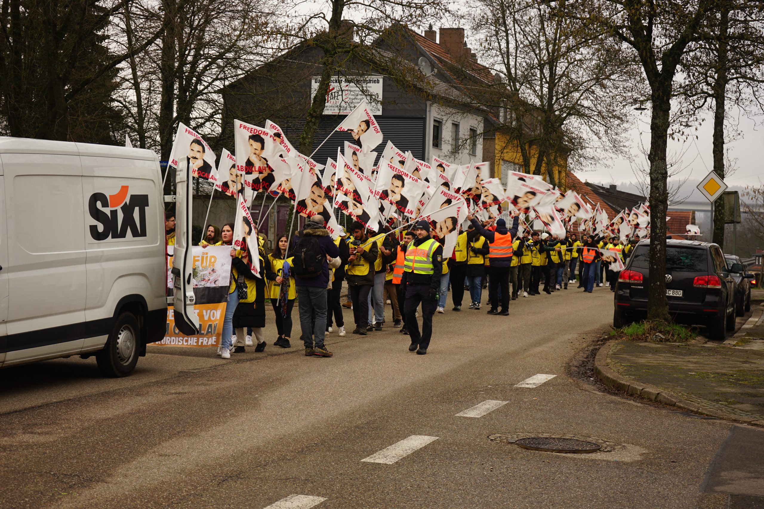 FRIEDRICHSTHAL – 10 Şubat’ta Almanya’nın Mannheim kentinde başlayan “Rêwîtiya Azadiyê” (Özgürlük Yolculuğu) sabah saatlerinde Almanya’nın Friedrichsthal kentinde, Bakur Kurdistan’daki Özgürlük yürüşünün Amed’e ulaşmasını “Bijî Serok APO” sloganları ile selamladı.