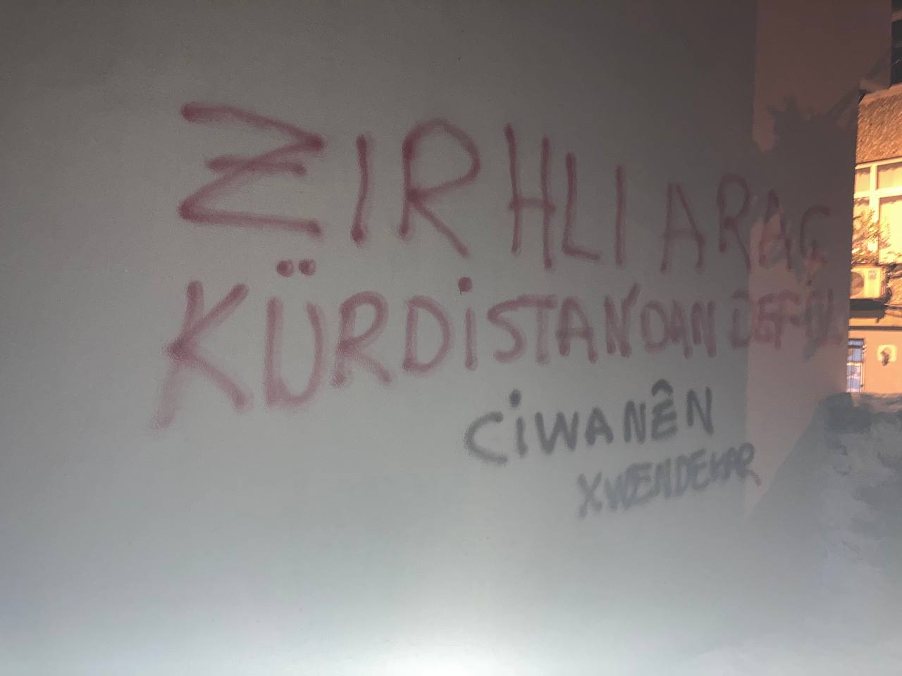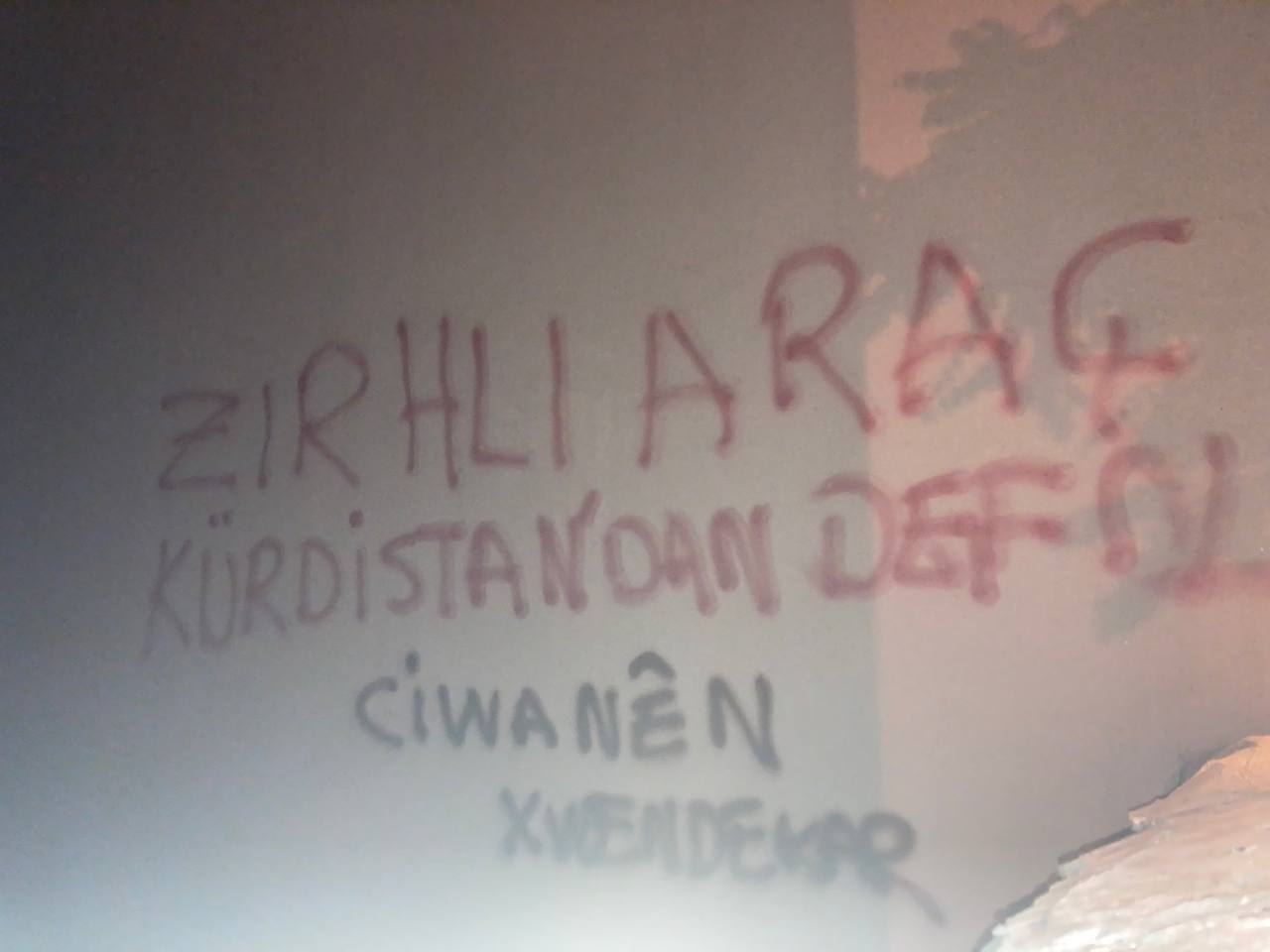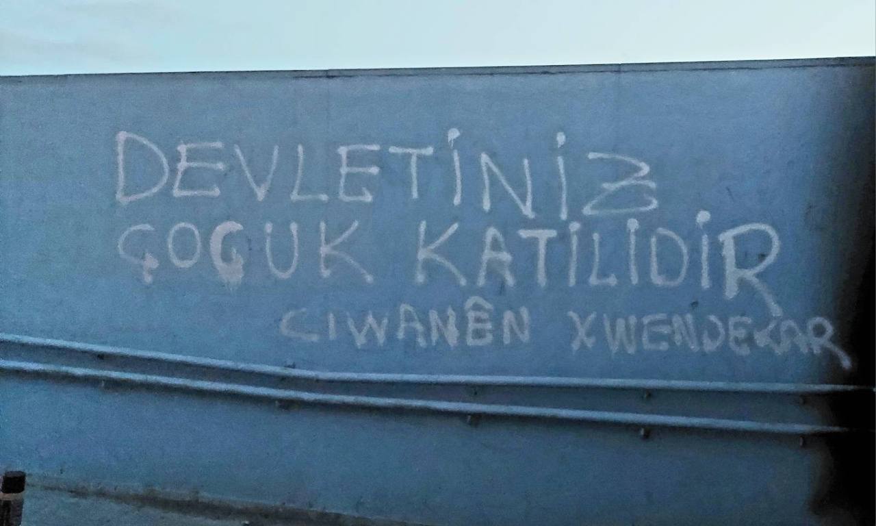 Öğrenci gençlik duvarlara “Zırhlı Araç Kurdistan’dan Defol” ” Devletiniz Çocuk Katilidir” “Emê Tola Erdem Bistînin” şeklinde yazılamalar gerçekleştirdi.