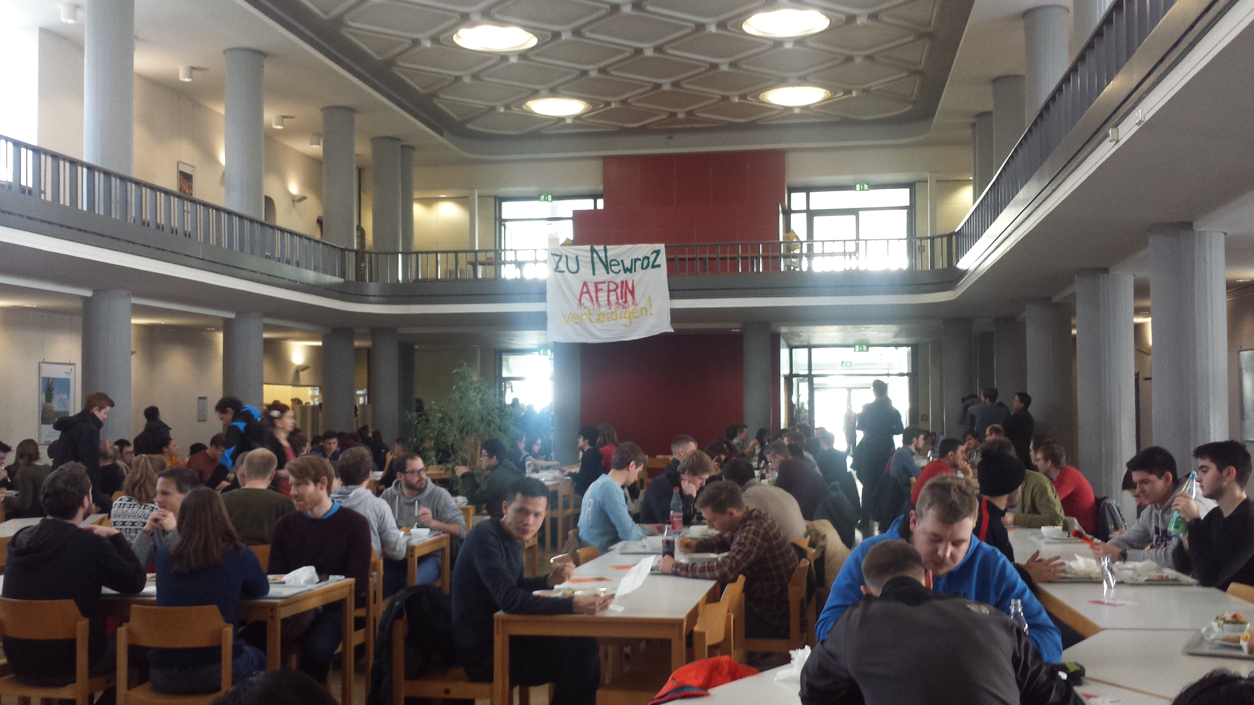 DARMSTADT – YXK Darmstadt üniversitesinde Afrin Direniscilerini selamladı. Üniversite kantininde “Newroz ruhuyla Afrini Savun ” yazili pankart asan YXK’liler Afrin direnişinin gerilla savaşi ile zaferi kazanacağını belirtti. Üniversite kampüsünde Afrin direnişini Anlatan yüzlerce bildiri dağıtıldı.
