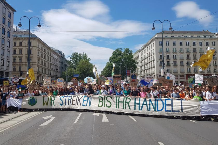 Avusturya’nın başkentinde 40 bin öğrenci “Biz ödevimizi yaptık sıra sizde” diyerek iklim için yürüdü. Yürüyüşe dünya çapındaki eylemleri başlatan genç Greta Thunberg de katıldı.