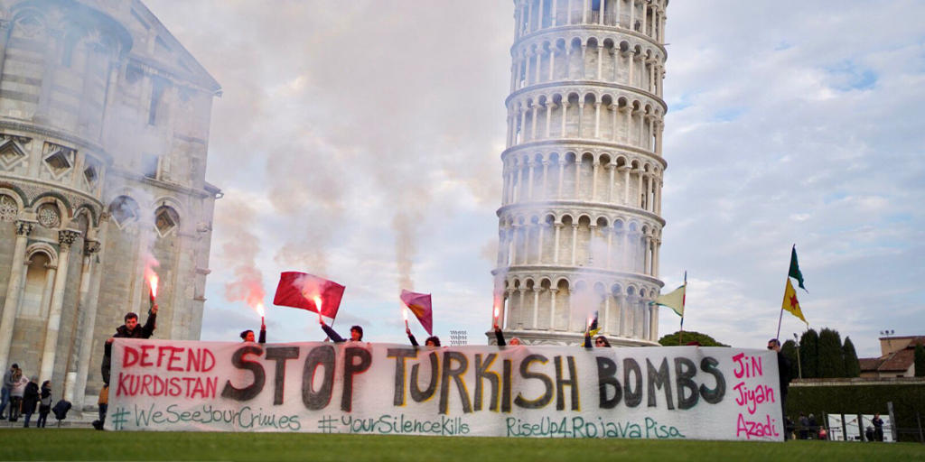Pisa Üniversitesi bu saldırıları şiddetle kınamakta, saldırılardan etkilenen Kürt topluluklarıyla dayanışma içinde olduğunu ifade etmekte, bölgedeki tüm askeri operasyonların durdurulması çağrısında bulunmakta ve tehlikeli bir tırmanışın önlenmesi için çağrıda bulunmaktadır.”