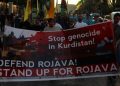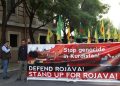 Eylemde “Bijî Serok APO” ve “Bijî Berxwedana Rojava” sloganlarının yanı sıra,