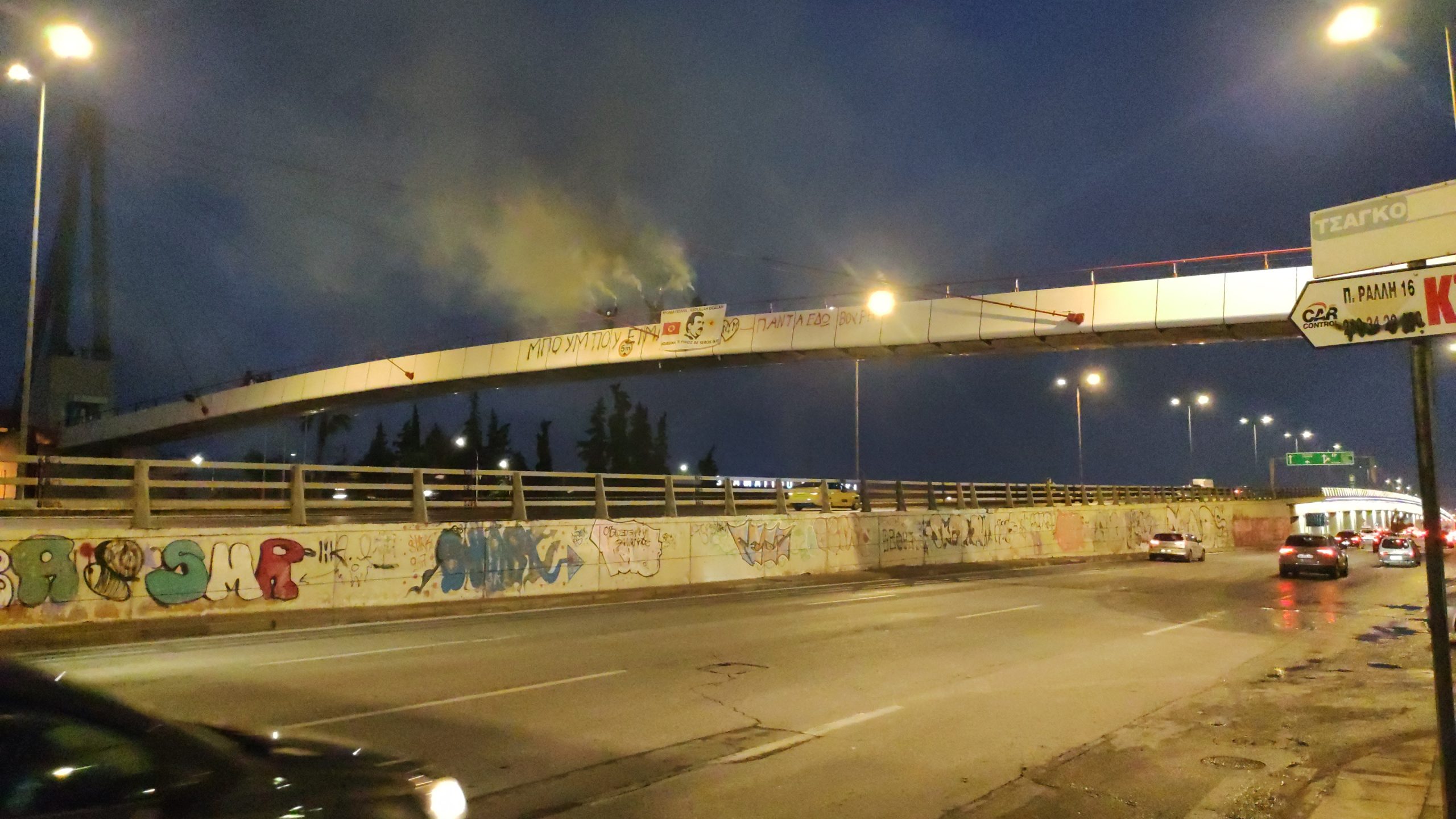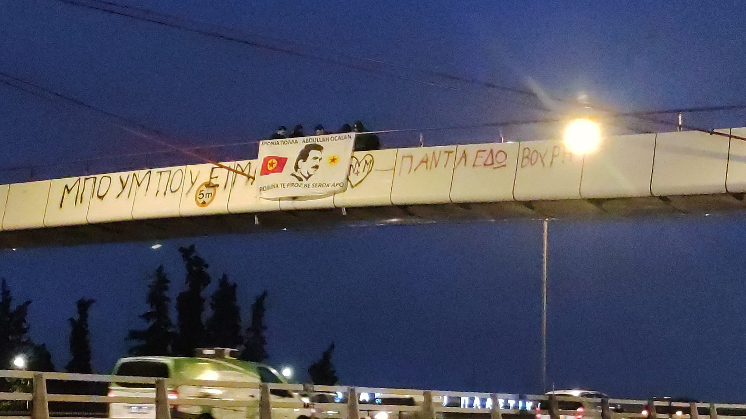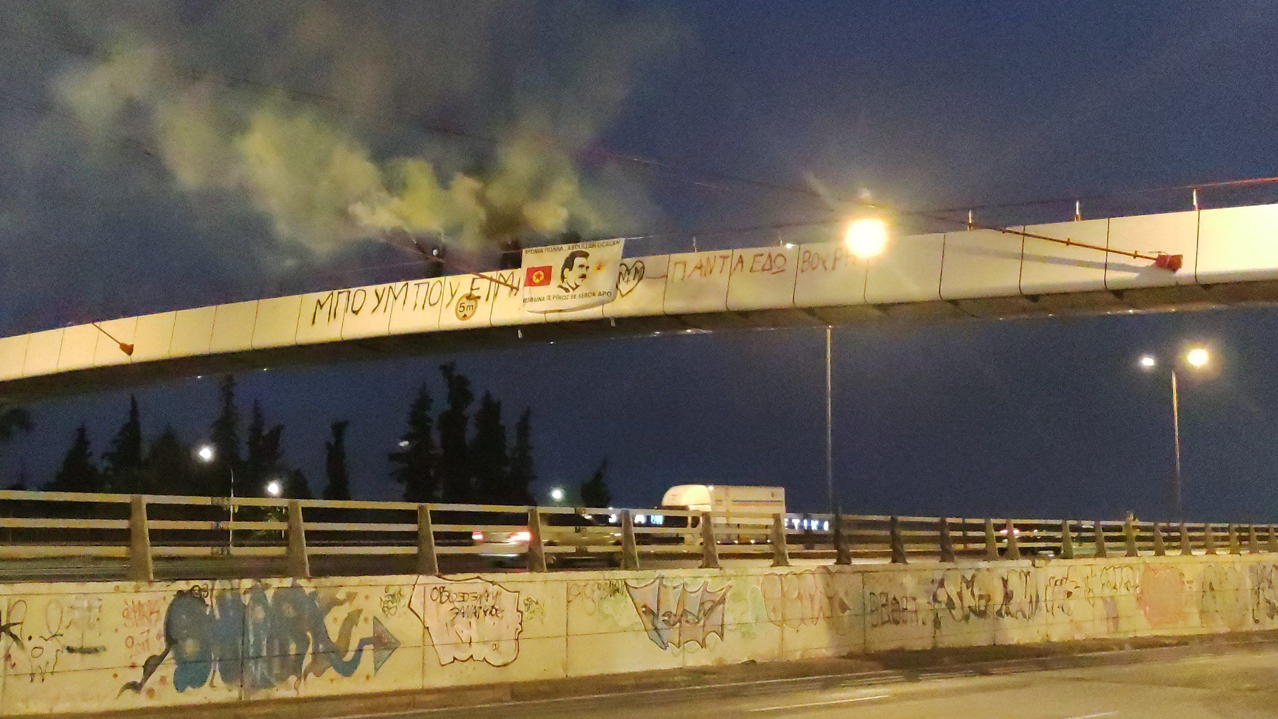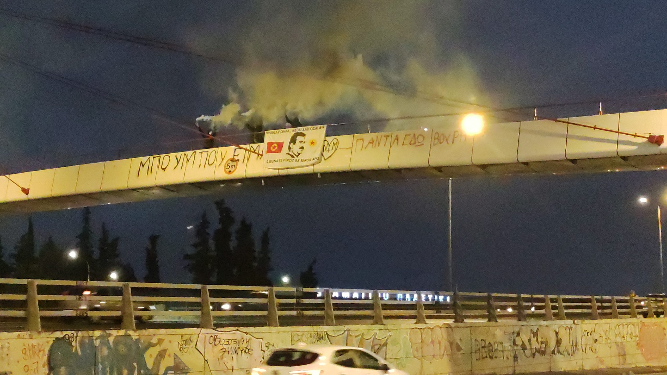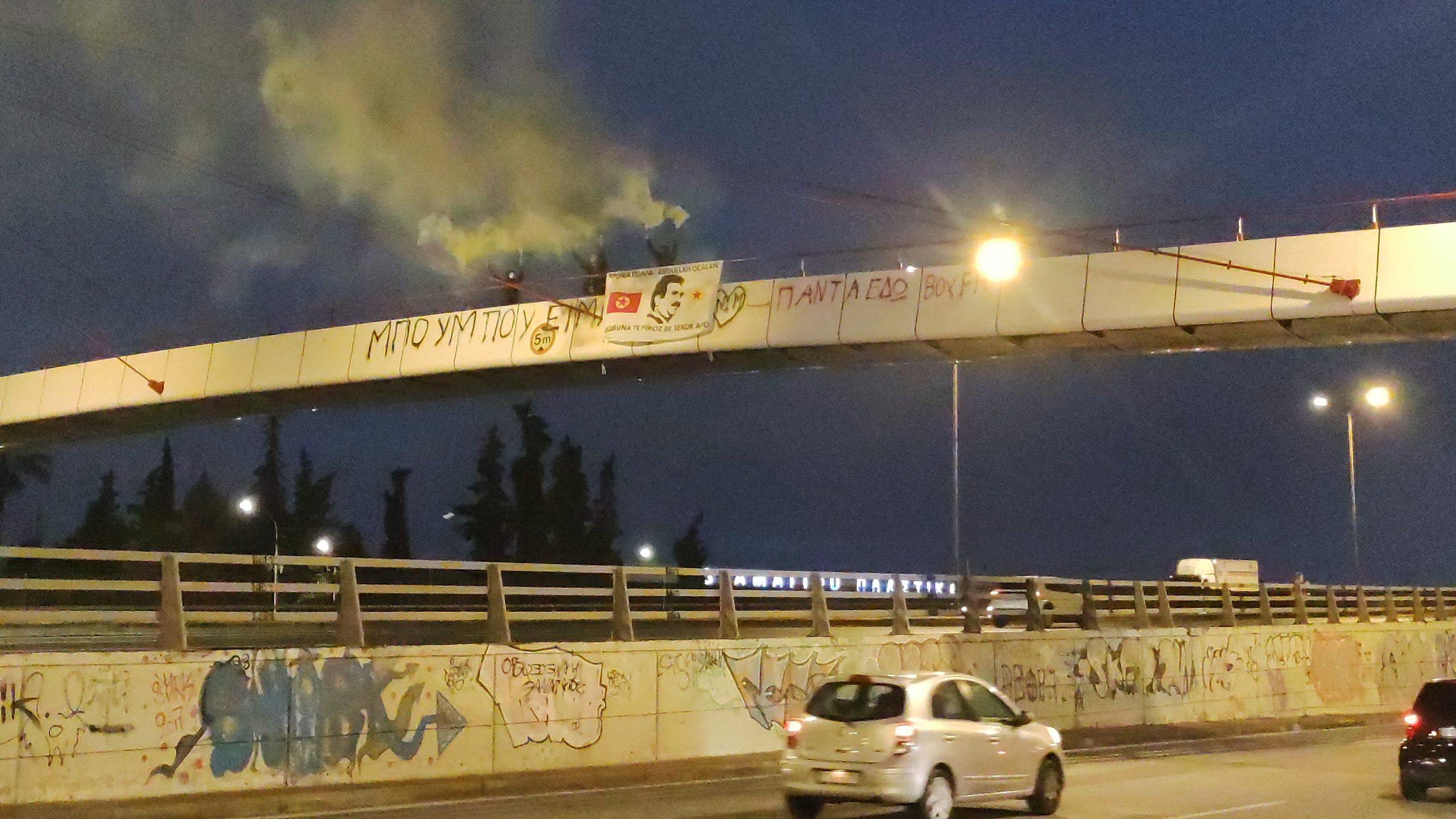ATİNA –  TCŞ üyeleri Yunanistan’ın başkenti Atina’da Kifosos otoban yolunda havai fişek ve meşaleli pankart ve yazılıma eylemi gerçekleştirdi.