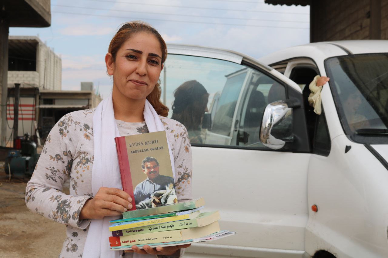 KOBANÊ- Kobanê Genç Kadınlar Birliği, Şeran İlçesi’nde Önder Apo’nun kitaplarından oluşan kitap standı açtı. Uluslararası komplonun 25. yıl dönümünde genç kadınlar Önder Apo’nun fikir ve felsefesini yaymak için eylemler yapmaya devam ediyor. Şeranlı genç kadınlar, Önder Apo’nun kitap ve broşürlerini dağıtırken, Önder Apo için mektup da topladılar.