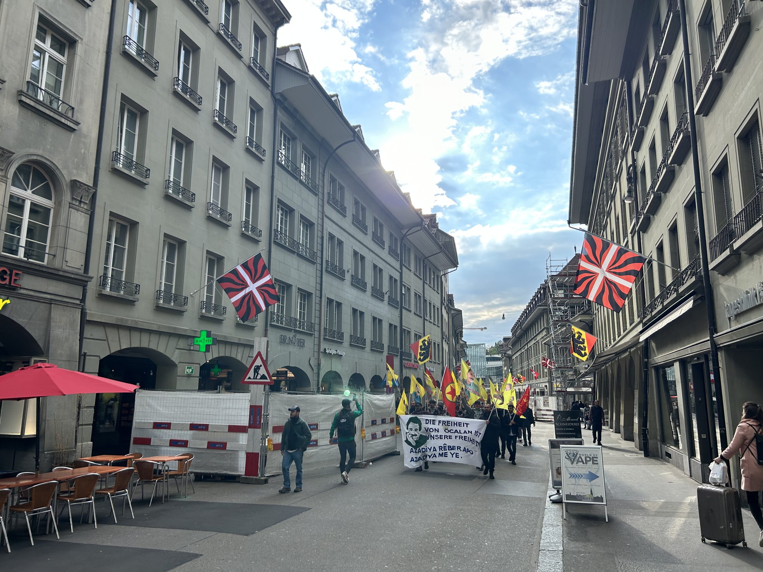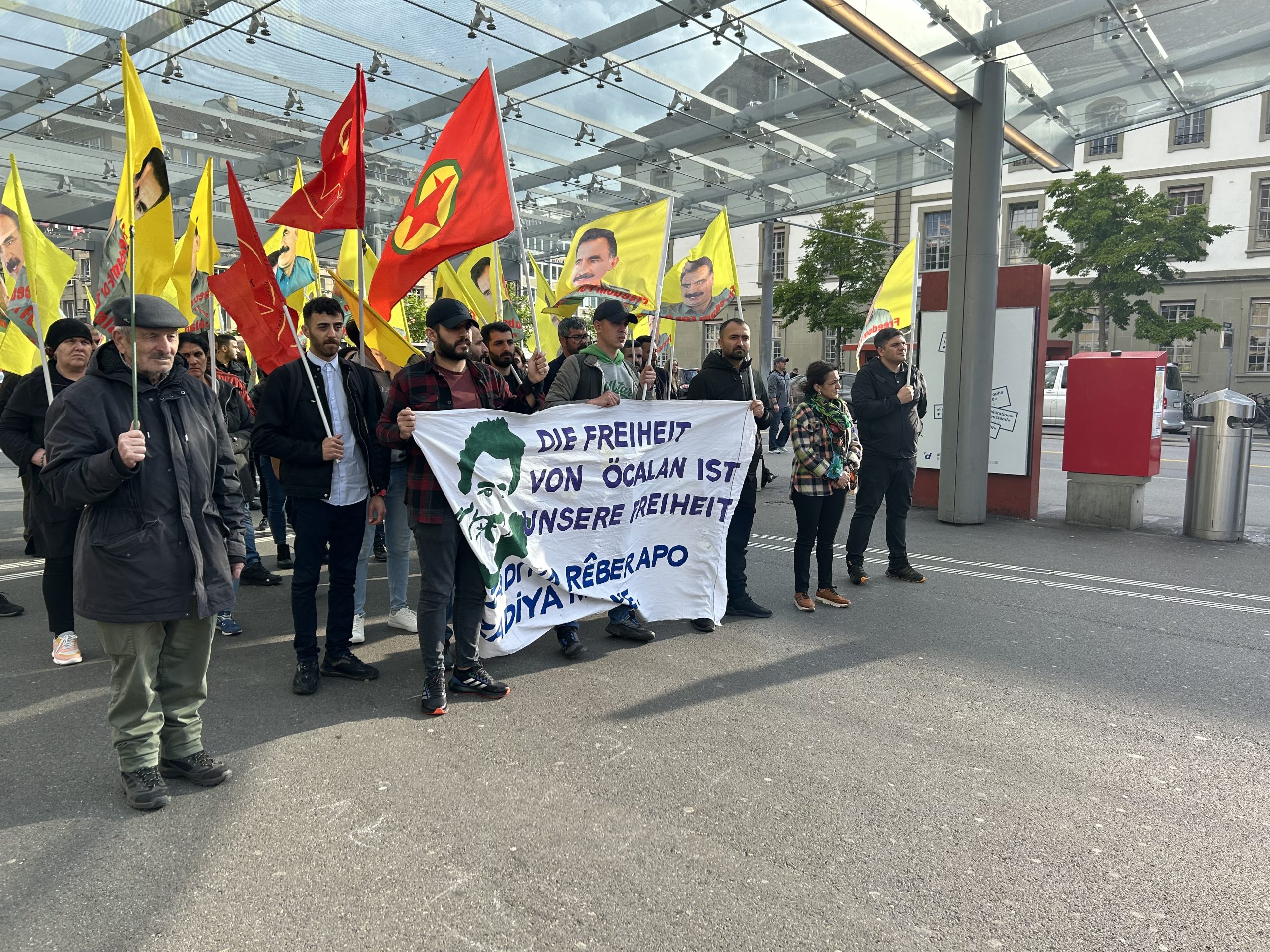 Bern Bahnhofplatz’a konuşmalarla başlayan eylem şehir içine doğru yarım saatlik yürüyüşü, “Bijî Serok APO”, “Ciwan Fedaiye Rêber APO ne” sloganlarıyla son buldu.