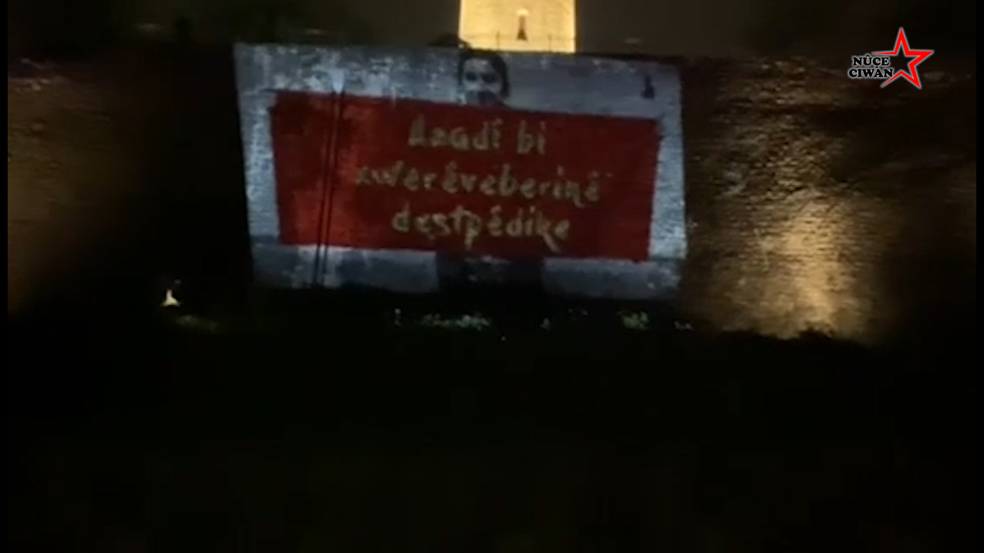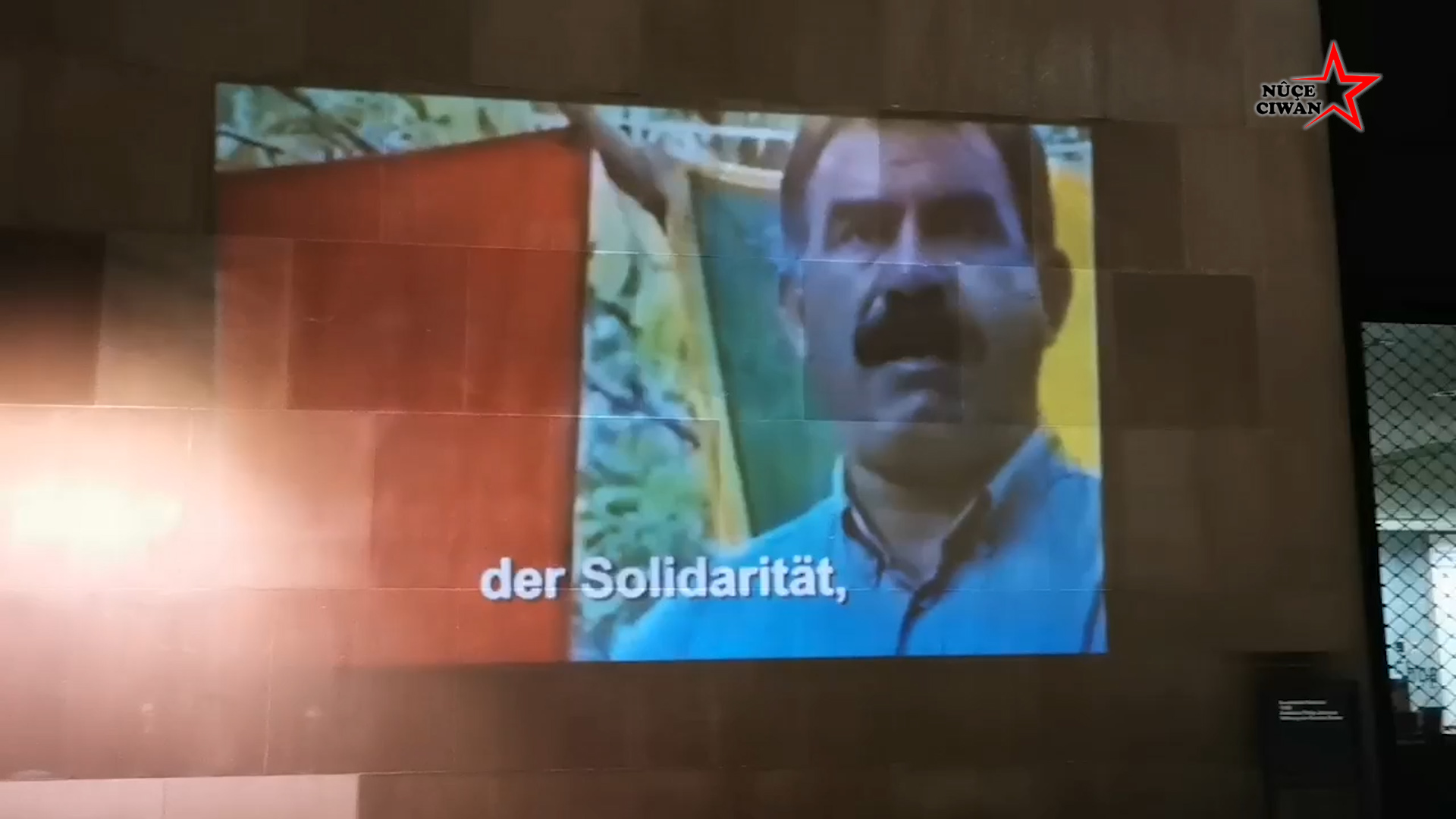 BİELEFELD – “Tecride, Faşizme, İşgale Son – Bi Hev Re Serhildan” şiarıyla düzenlenen eylemde gençler, Önder Öcalan’ın fikirlerinin yasaklanmaya çalışılmasına karşı tüm halkın görebileceği yerlerde duvarlara yansıttı.