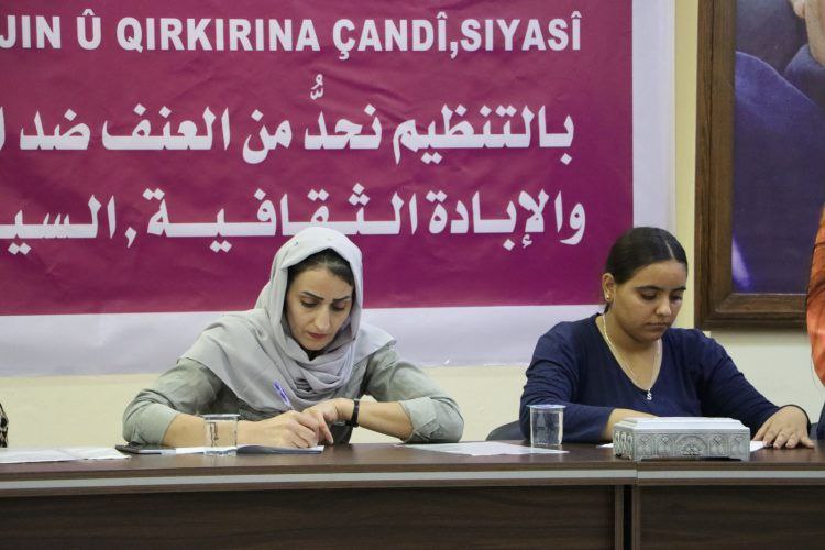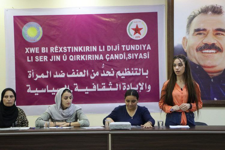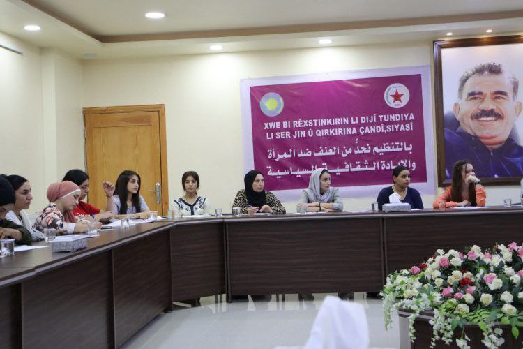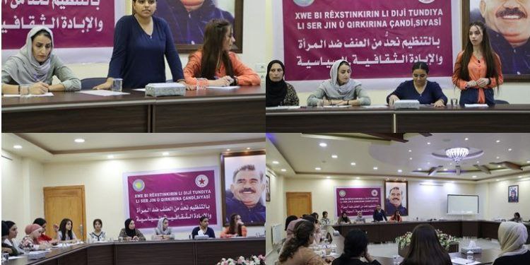 Çok sayıda siyasi partinin katılımıyla PYD’li genç kadınların öncülüğünde gerçekleştirilen çalıştay kadına yönelik şiddeti konu aldı.