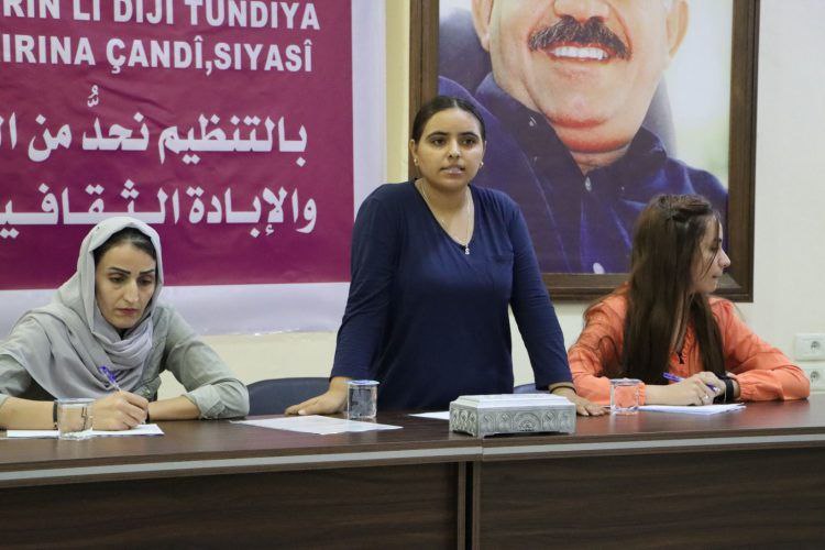 QAMIŞLO- PYD’li genç kadınlar “Örgütlenelim, kadına yönelik şiddeti, kültürel ve siyasi soykırımı yok edelim” şiarıyla Kuzey ve Doğu Suriye düzeyinde bir çalıştay düzenledi.