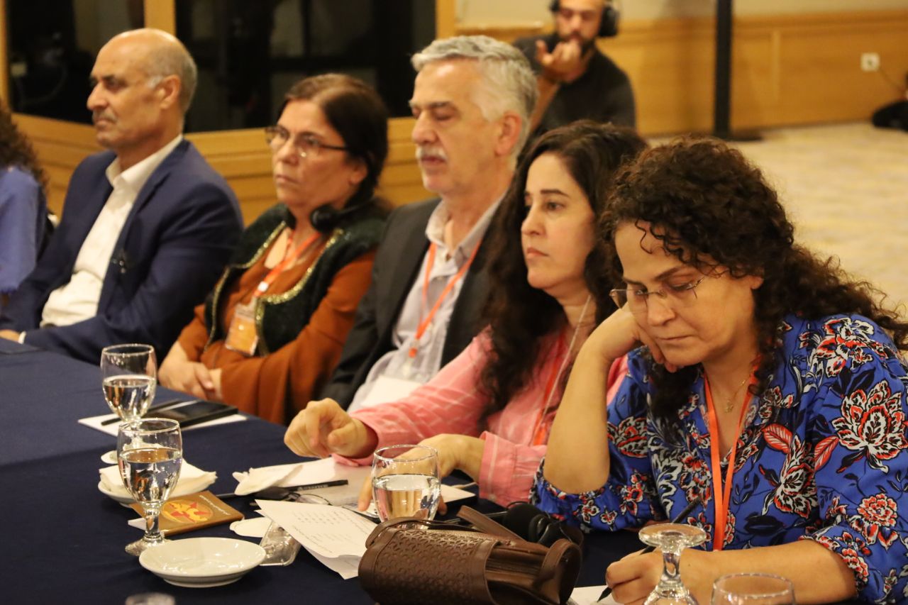 BEYRÛT- YPJ ve RAWA’dan gelen selamlama videolarının izlenmesinin ardından hazırlık komitesi tarafından hazırlanan, Ortadoğu halklarının direnişini konu alan sinevizyon gösterimi yapıldı. Toplamda 40 dakika süren sinevizyon gösterimi katılımcılar tarafından büyük bir heyecanla izlendi.