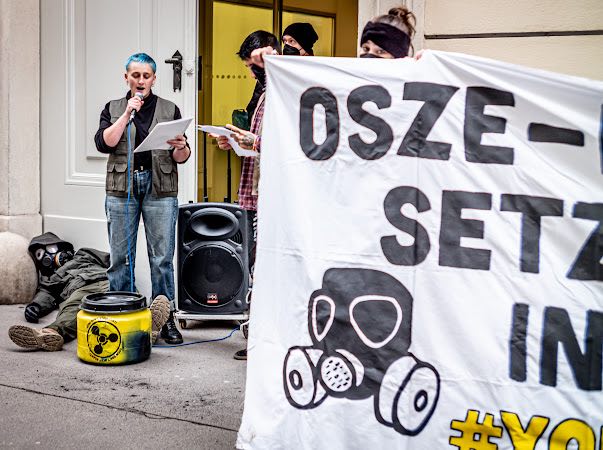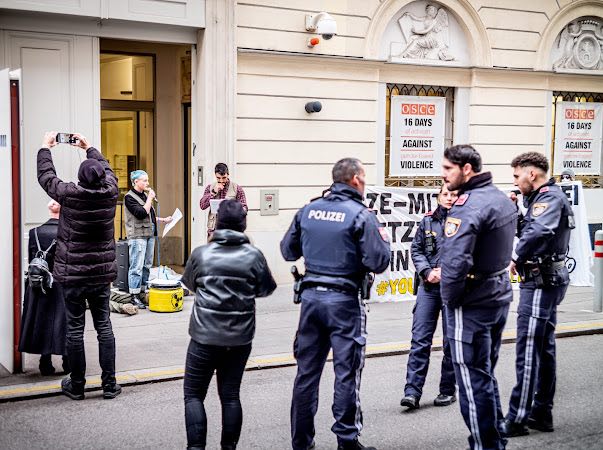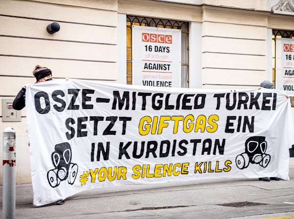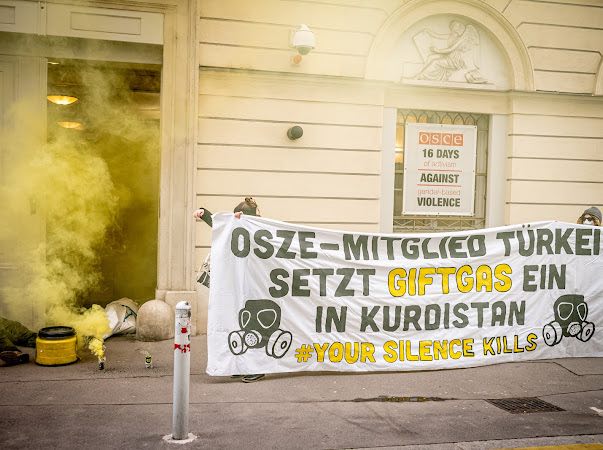 VİYANA – TCŞ (Tevgera Ciwanên Şoreşger) üyeleri öncülüğünde, enternasyonalist gençlerle Avrupa Güvenlik ve İşbirliği Teşkilatı (AGİT) Binası’nda Kurdistan’da kimyasal silah kullanımına karşı sivil itaatsizlik eylemi gerçekleştirildi.