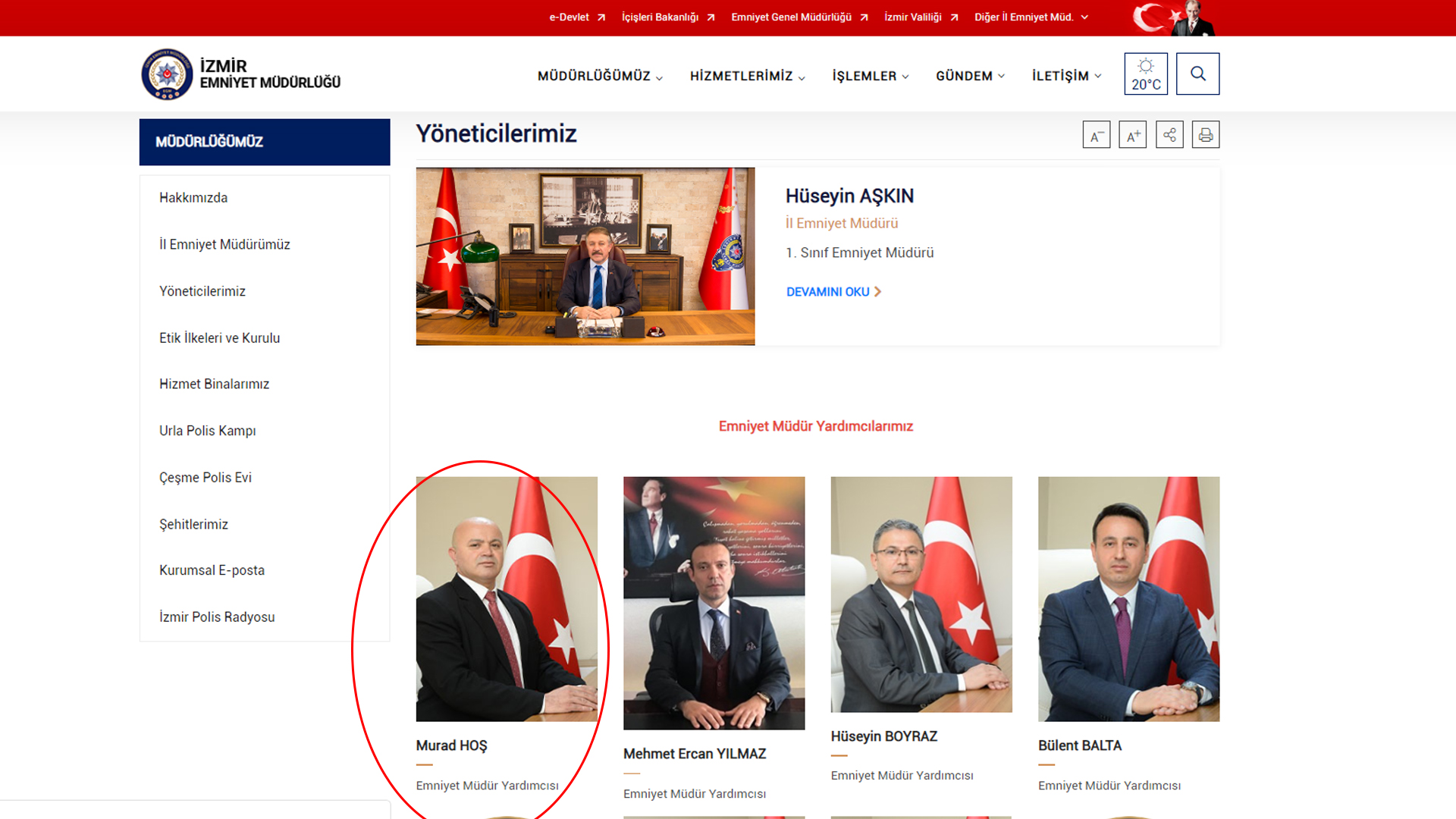 En son direnişçi Annelere insanlık dışı hakaret eden faşist Türk poliis Murad Hoş İzmir’de Emniyet Müdür Yardımcısı olarak görev yaptığı öğrenildi. İzmir resmi polis websitesinde verilen bilgilere göre faşist polis Murad Hoş, Hassas Bölgeleri Koruma Şube Müdürlüğü, Genel Denetleme ve Disiplin Şube Müdürlüğü ve Tire İlçe Emniyet Müdürlüğü’den sorumlu.