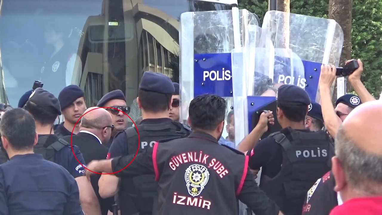 HABER MERKEZİ – Halklar Önderi Abdullah Öcalan’a uygulanan ağırlaştırılmış tecride karşı devam eden açlık grevi ve ölüm oruçlarına dikkat çekmek amacıyla Konak Eski Sümerbank önünde açıklama yapmak isteyen direnişçilerin annelerine faşist Türk polisleri saldırdı. Saldırı sırasında JİTEM arttığı işkenceci gaspçı kayyım polis, İzmir Emniyet Müdür Yardımcısı Murad Hoş, oğlu açlık grevi direnişinde olan anneye, “Gebersin çocuğun bana ne” sözleri kameralara yansıdı.