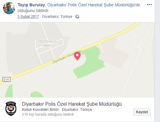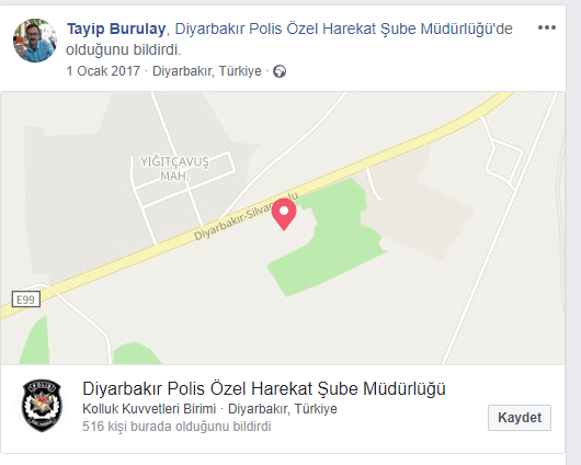 Burulay’ın sosyal medya hesabında sık sık Diyarbakır Polis Özel Harekat Şube Müdürlüğü’ne gittiği görülüyor. Yine Bingöl Emniyet ve Jandarmanın bulunduğu Uydukent’ten çok fazla yer bildirimi de yaptığı görülüyor.