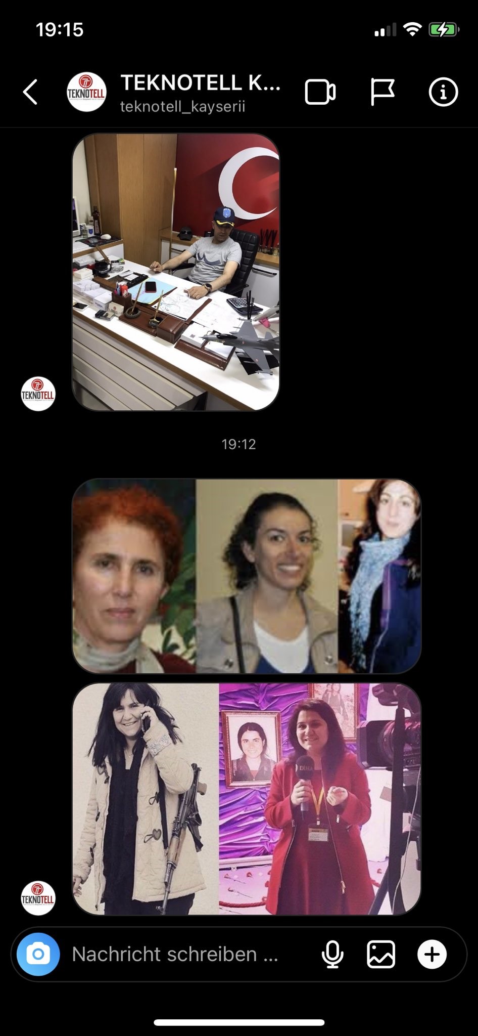 “Faşist bir Türk kısa süre önce bana Almanya’ya geleceğini yazdıktan sonra, şimdi de nerede olduğuna dair ekran görüntüleri, silahlarını ve öldürülen solcuların resimlerini gönderdi. Gözdağı verme girişimleri işe yaramıyor ve mücadele etmeye devam ediyorum.”